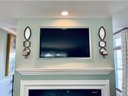 Candles sit on bottom shelf area and beautifully reflect