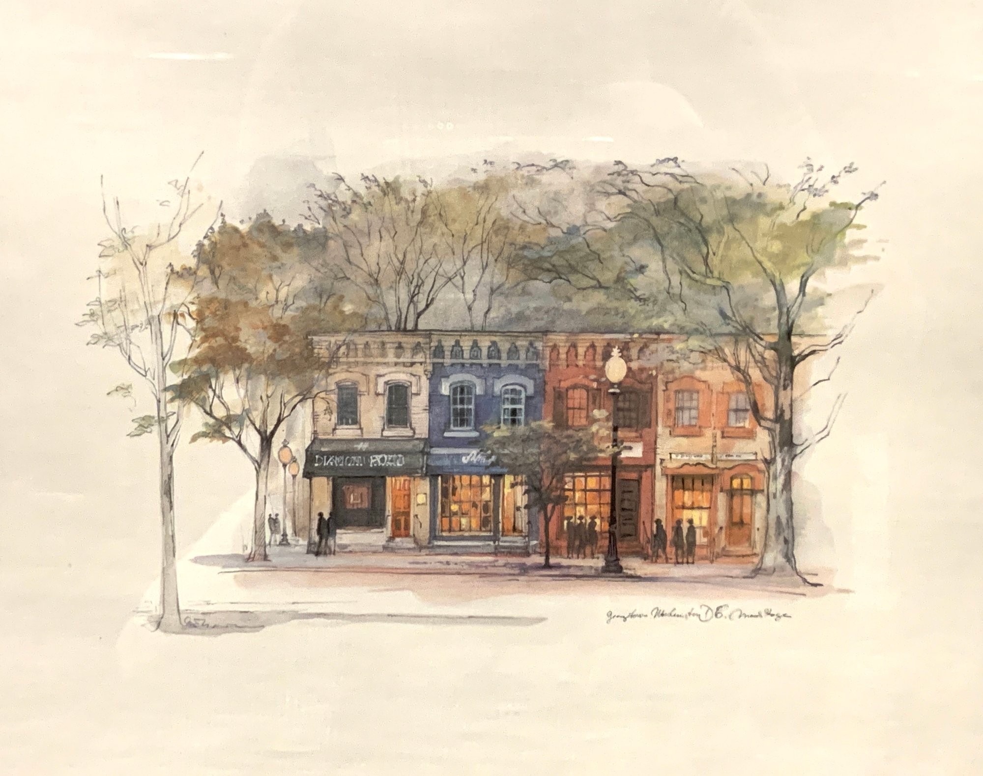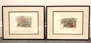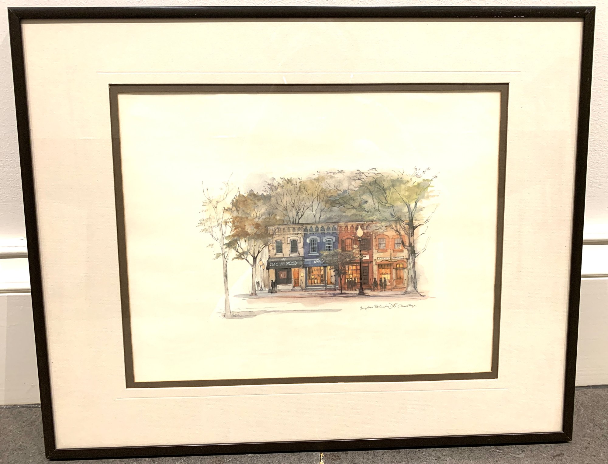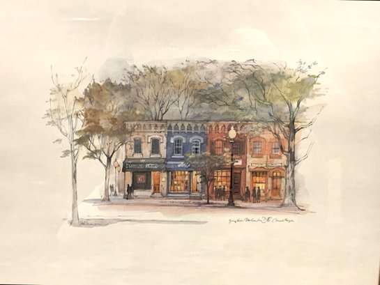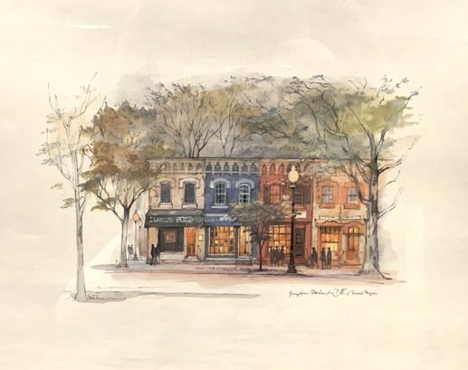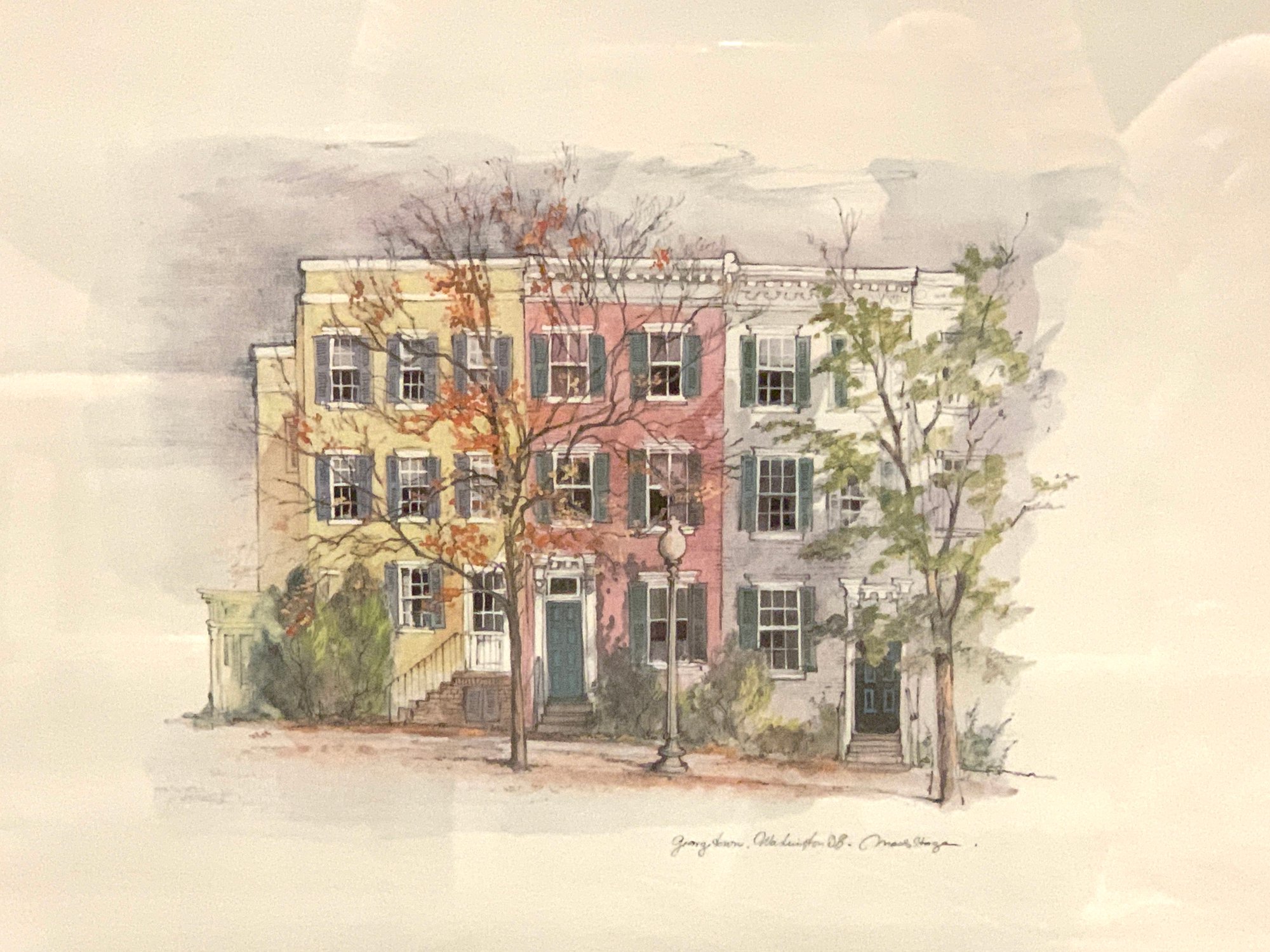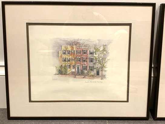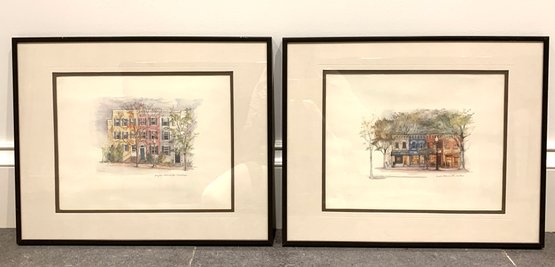 Sweet pair of signed prints depicting the beautiful neighborhood and brownstones of Georgetown in Washington DC