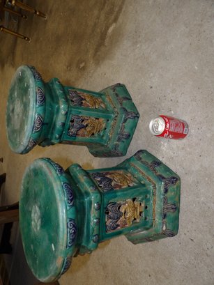 Pair Glazed Stoneware Chinese Garden Seats Or Pedestals