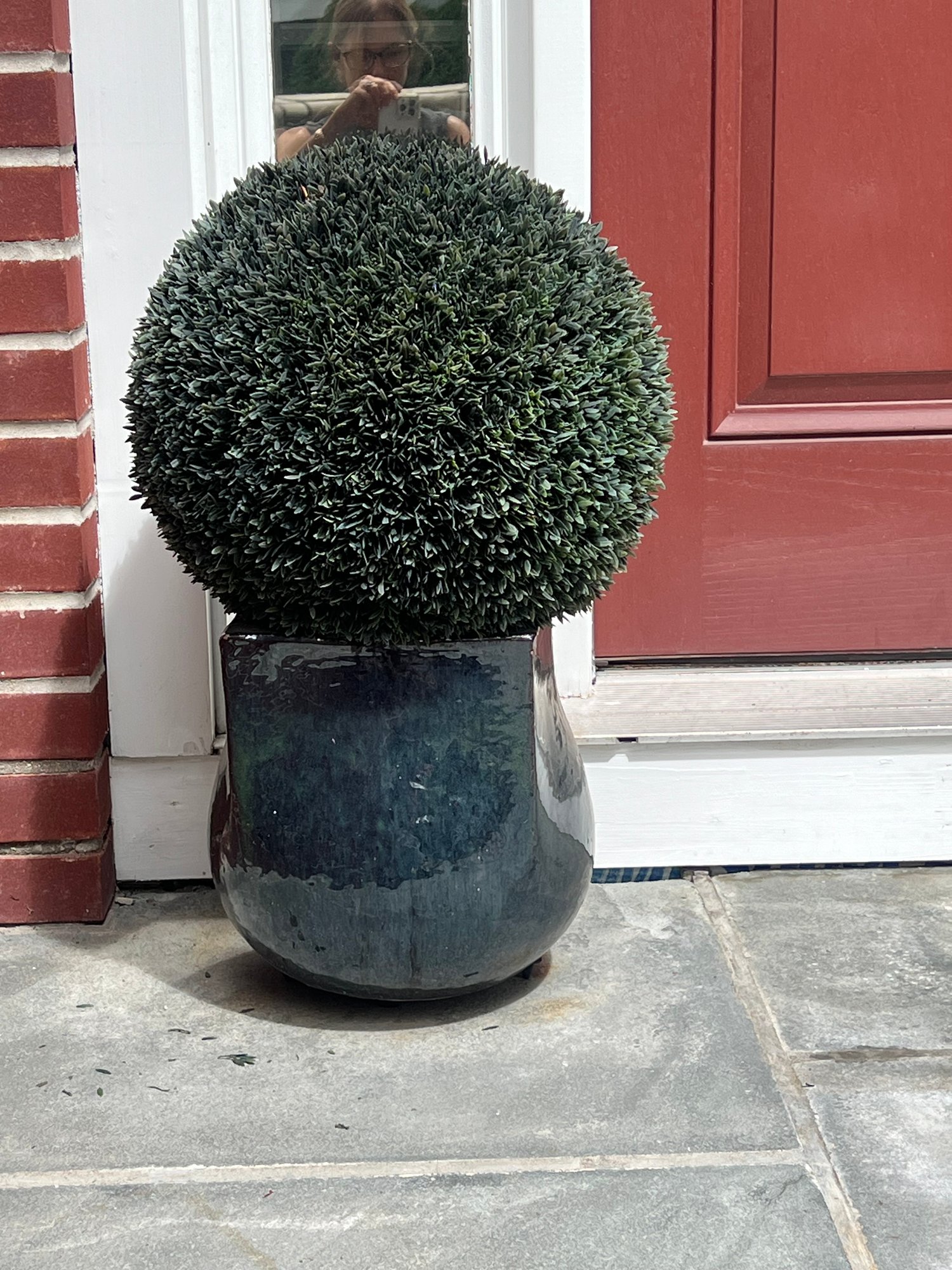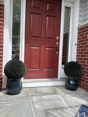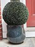 Pair glazed planter with faux topiary balls