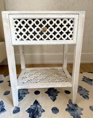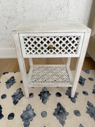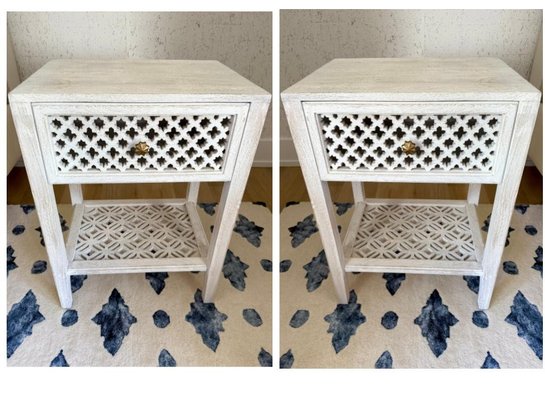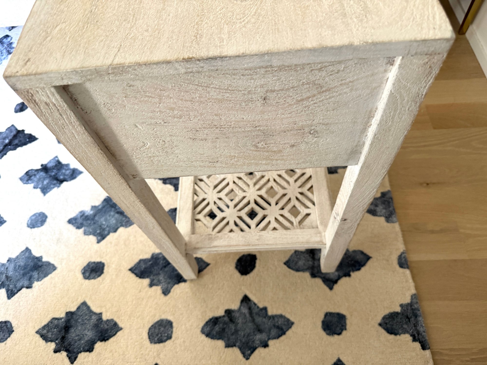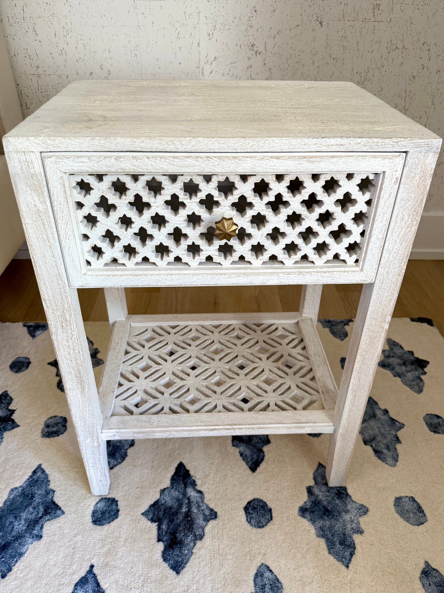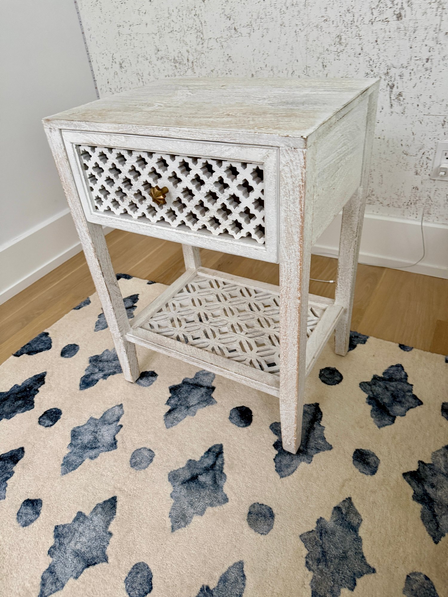 Hand carved and whitewashed.
