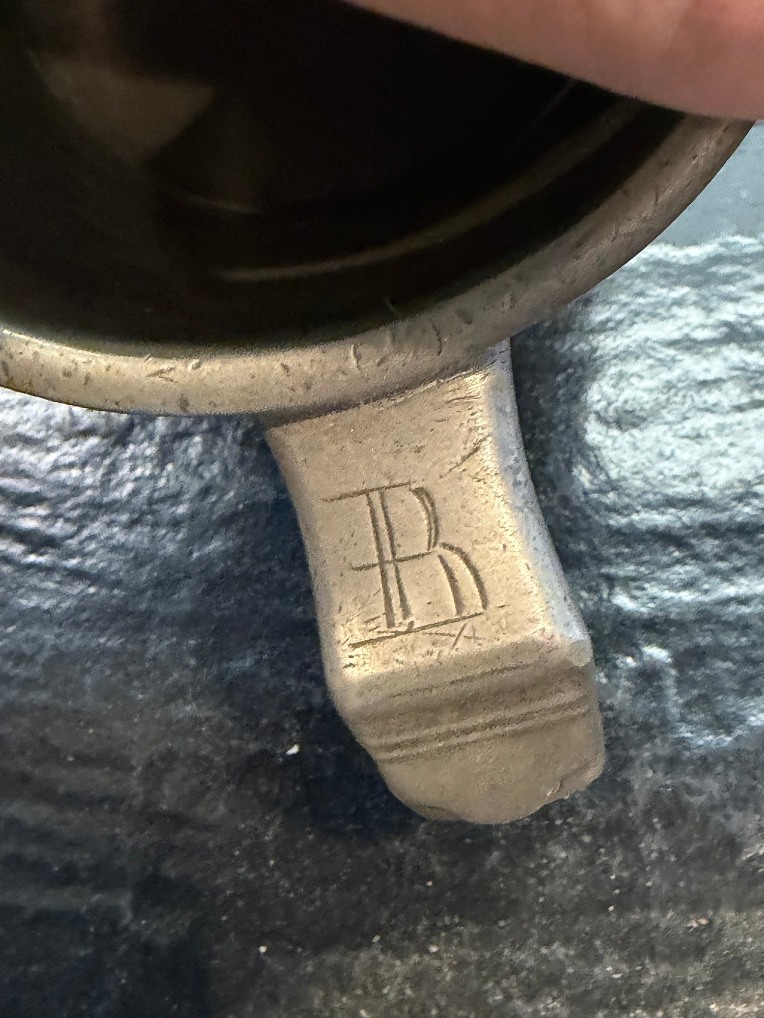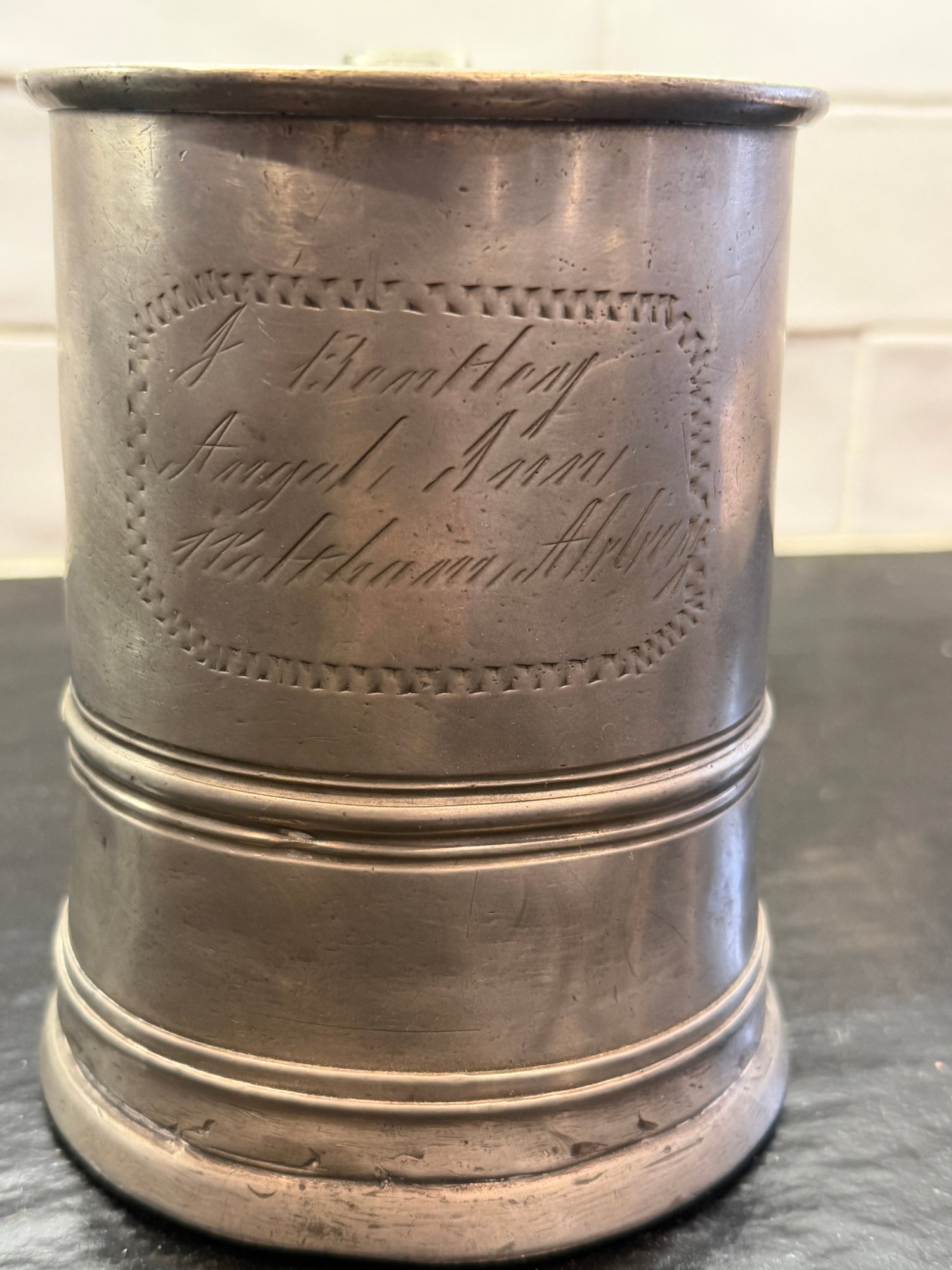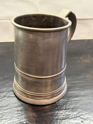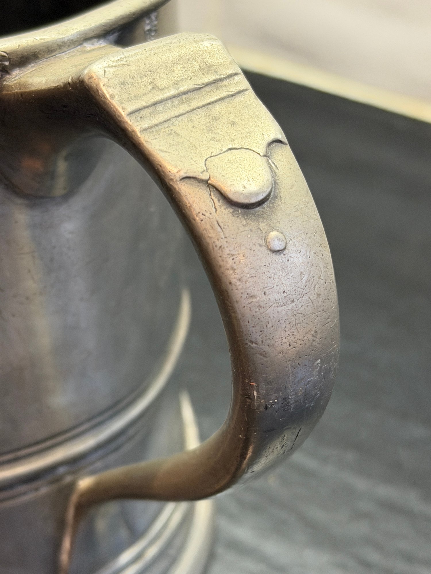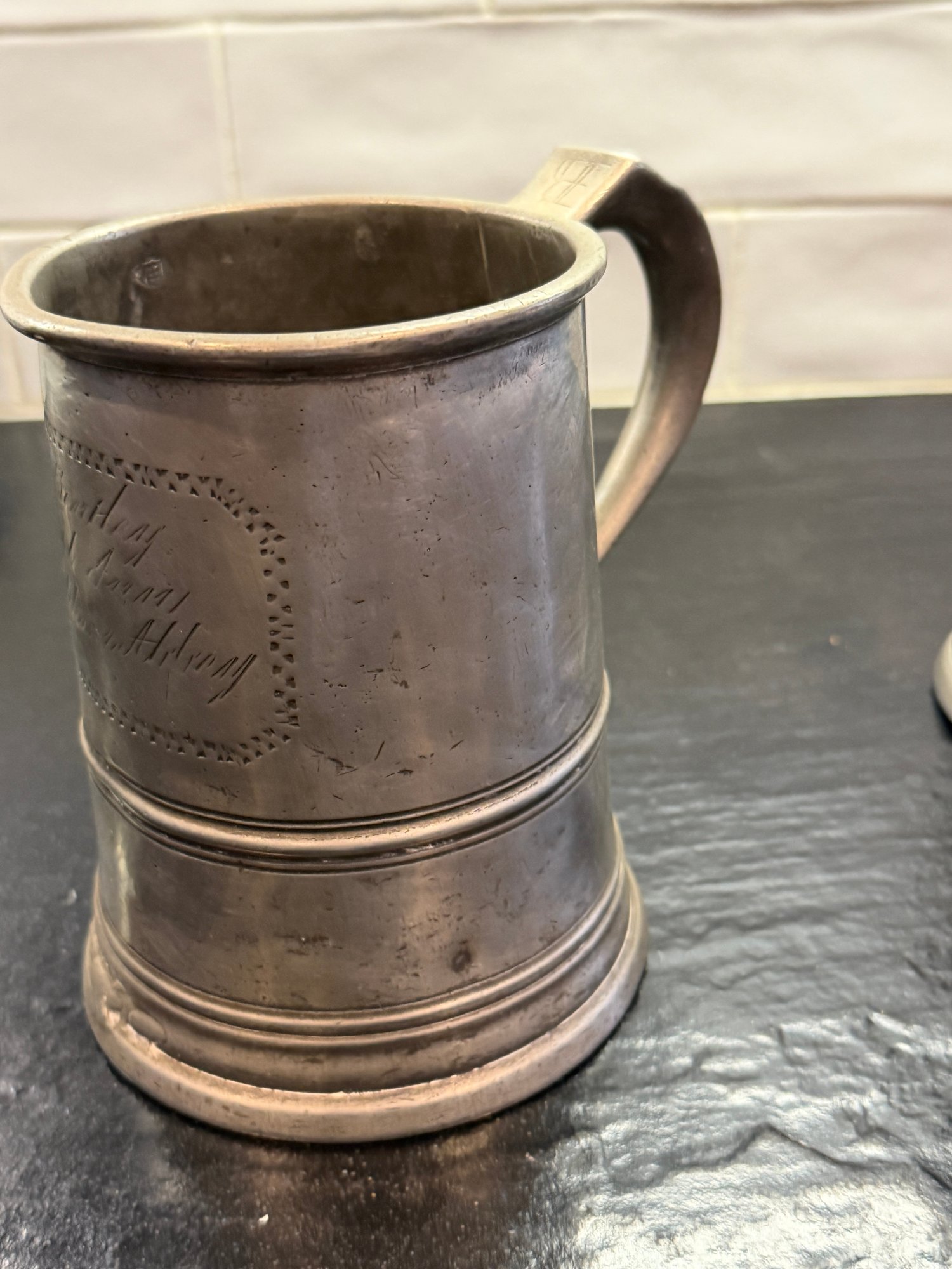 Pair of antique vintage pewter pint tankard with multiple hallmarks. These tankards are charming collectible pieces