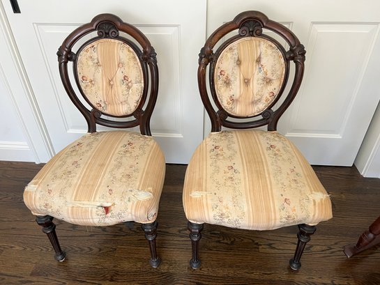 Pair of vintage or antique French style armless balloon-back slipper chairs.