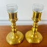 Pair Of Brass Toned Candlesticks With Glass Inserts 7.5"