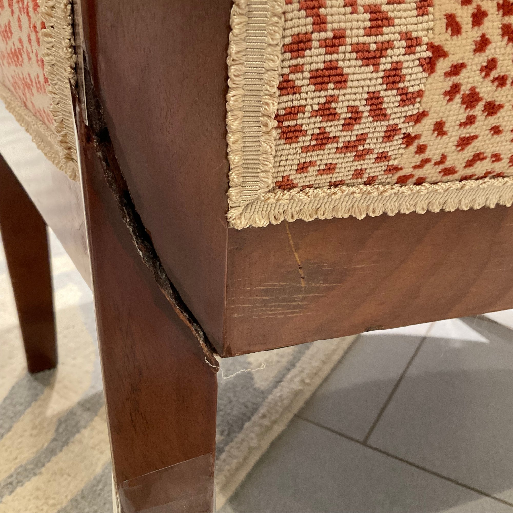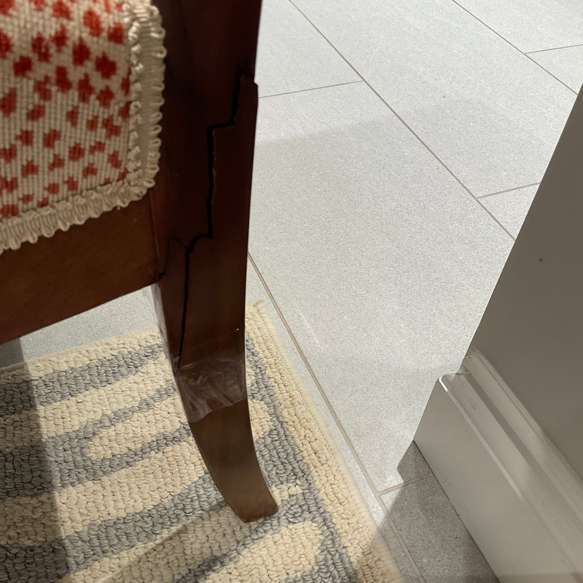 ONE LEG on ONE CHAIR is BROKEN. See pic!