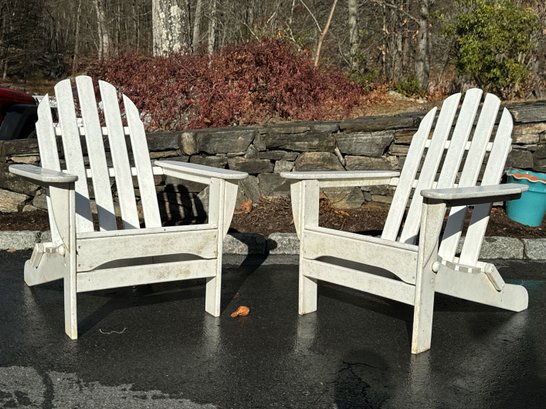Well made Adirondack Chairs, White finished. Would clean up nicely with a power washing. Good overall sturdy condition.