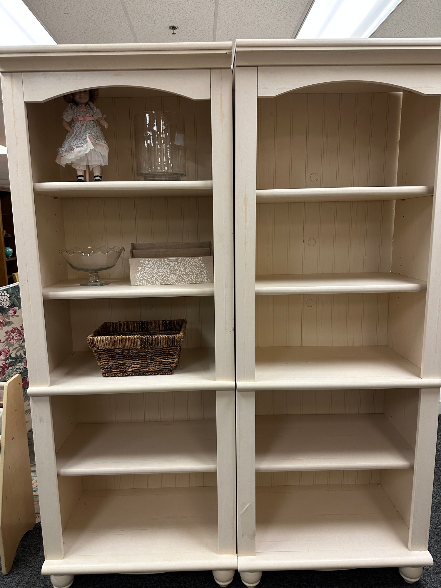 adjustable shelves - 5 shelves in each solid 27 1/2 x 16 1/2 x 76.