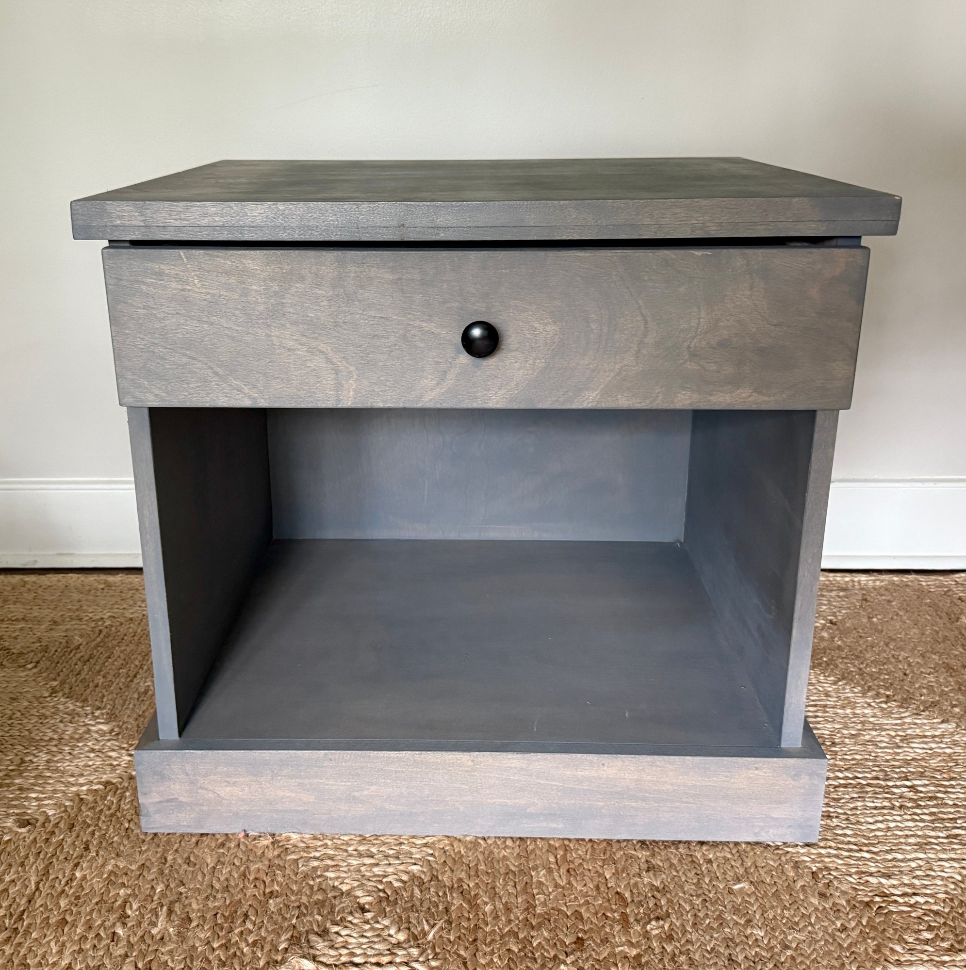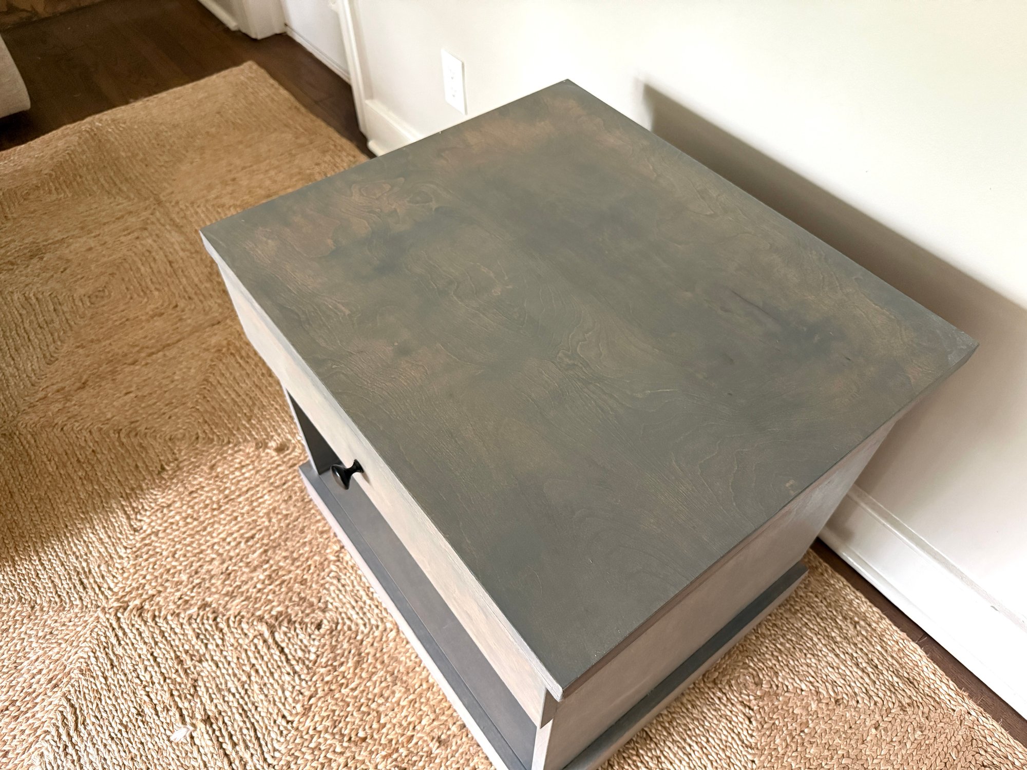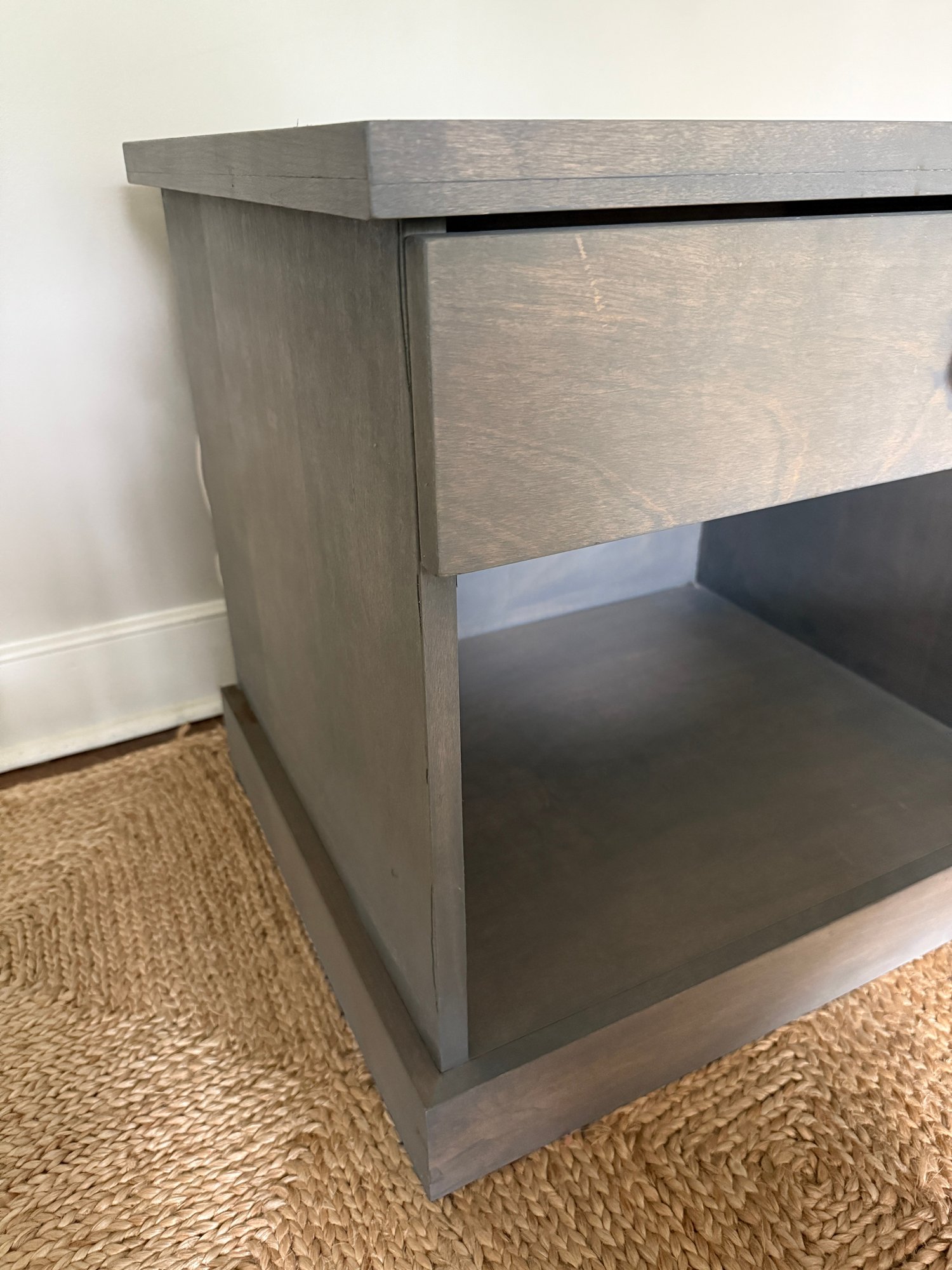 Power strip inside soft close drawer (hole in back for wires)