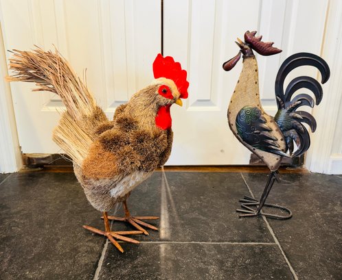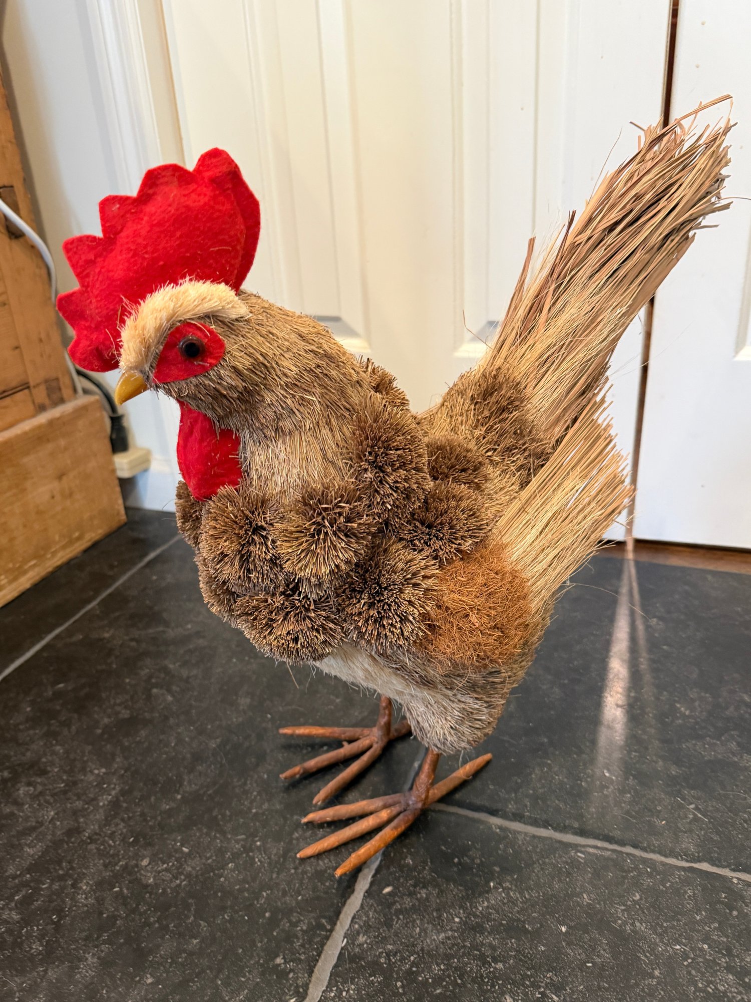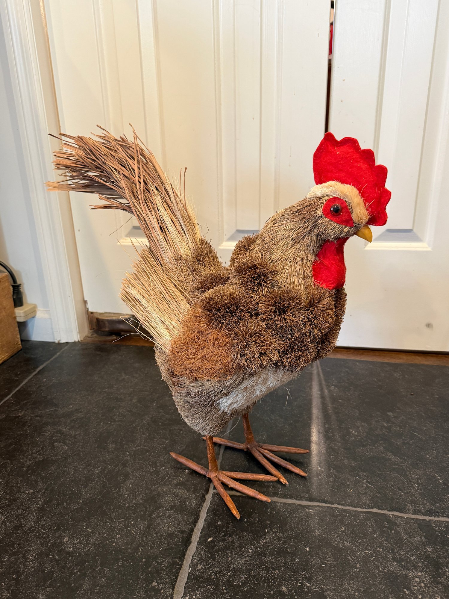 Vintage Straw Rooster with Red Felt Comb- 20"H
