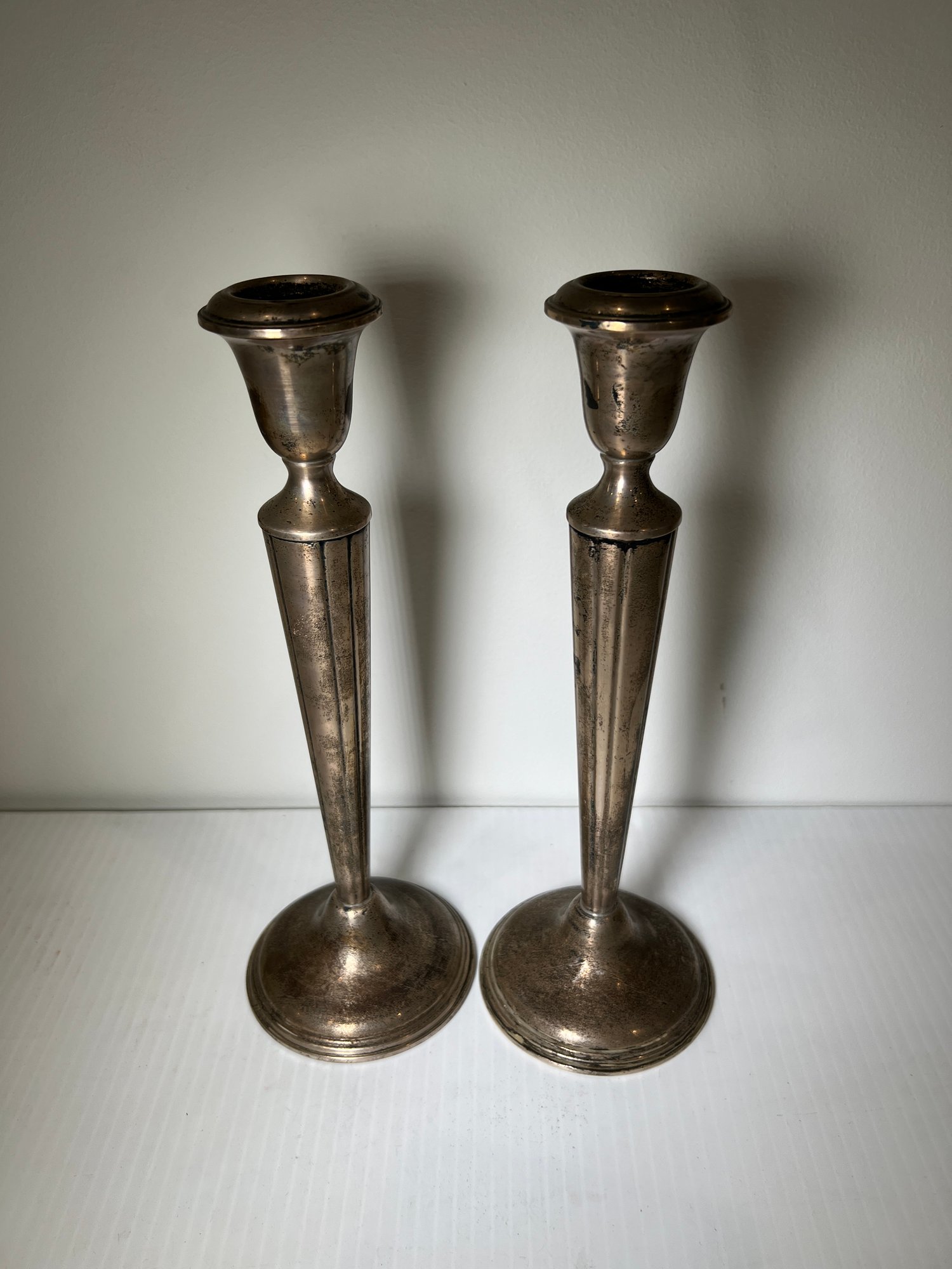Vintage pair of sterling silver weighted candlesticks in an art deco style by Empire.