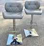 Faux gray leather bar stools with metal chrome finish base