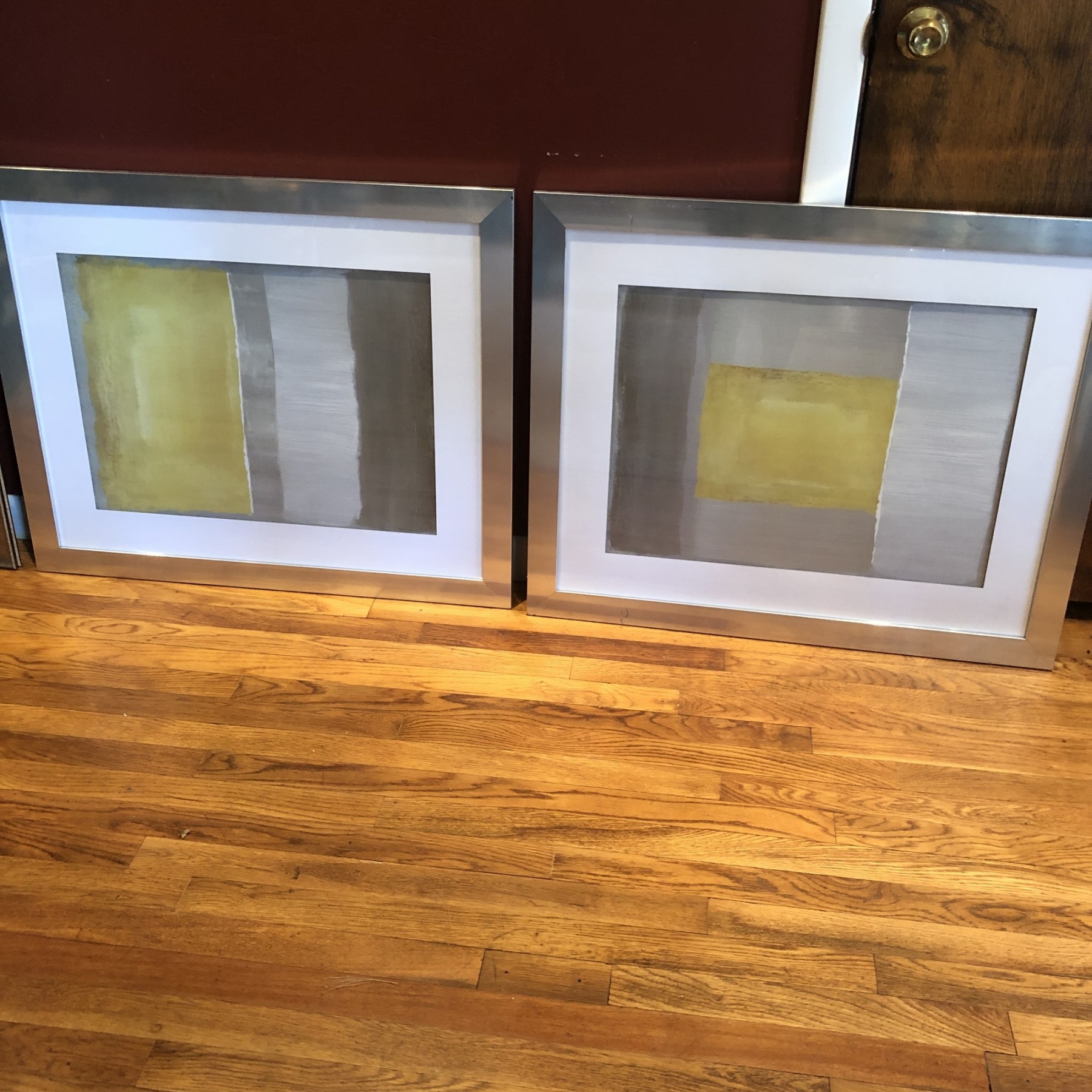 Pair Of Framed Modern Wall Art Pieces. Each measures 34"x28".