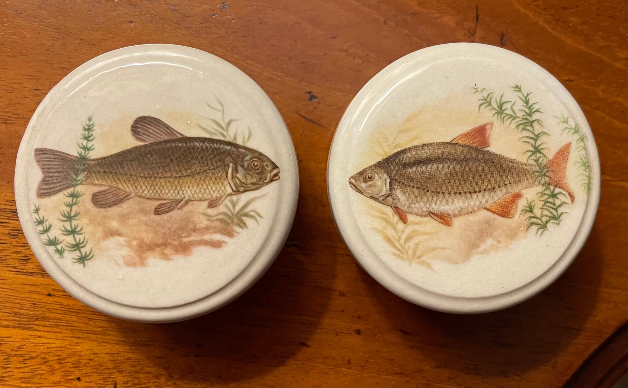 These charming small jars were given to British Airways first class passengers in the good old days. They are 2" in diameter by 1" tall. Both are in very good condition.