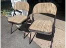 Pair Of Meco Folding Chairs With Fabric Cushions