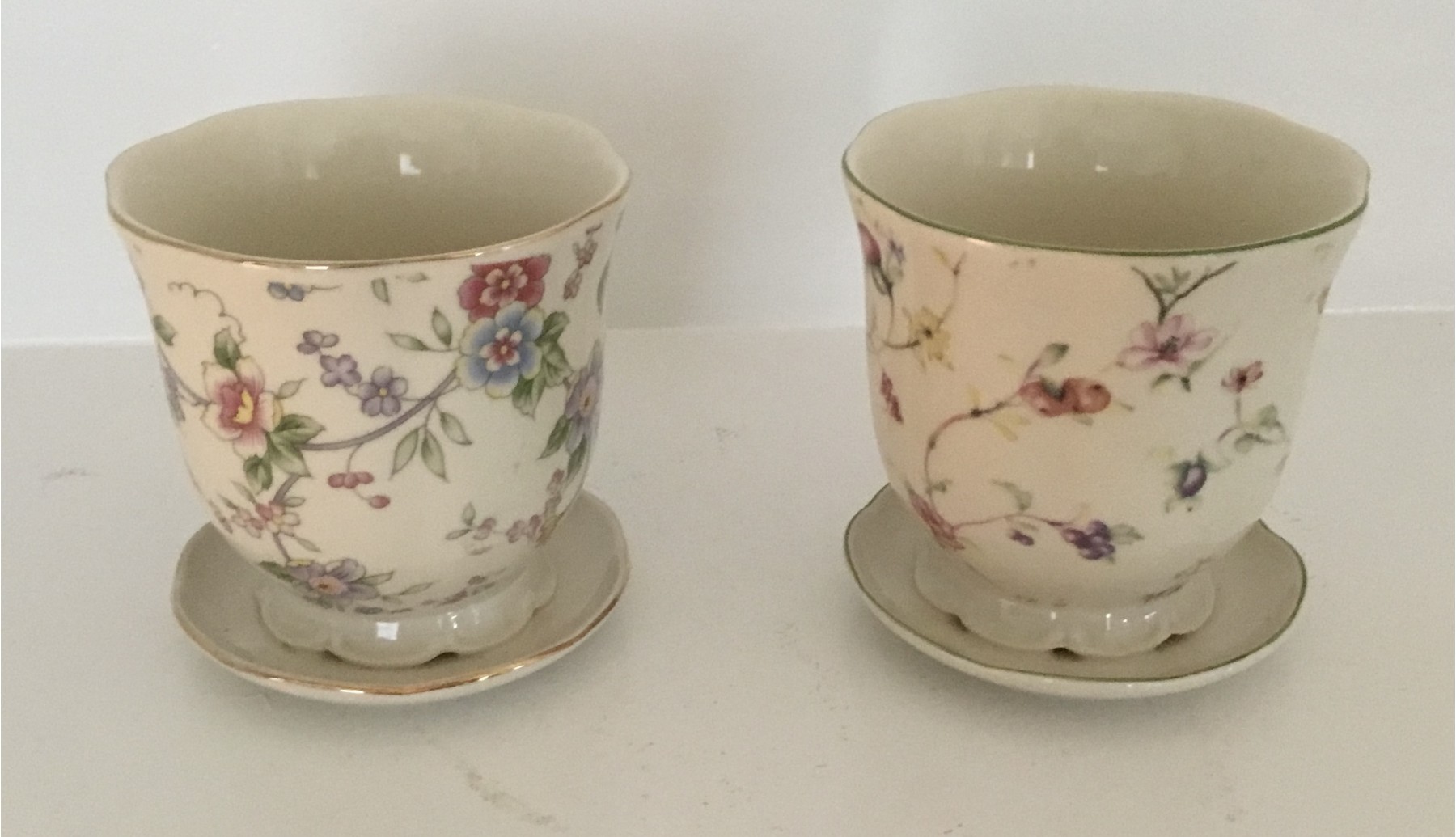 Pair Of Porcelain Decorative Small Planters