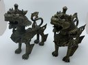 Amazing antique bronze Asian lions in excellent condition. These are handmade Asian Kylin temple guardian figures and believed to be 19th century vintage. What sets this pair apart are the carved eyes - possibly bone or porcelain. The larger size and fine detailing also make these highly desirable. No cracks or repairs found and these retain their vintage patina. We have found only one other online with this type of eye and it is selling for $1000 for a single lion!