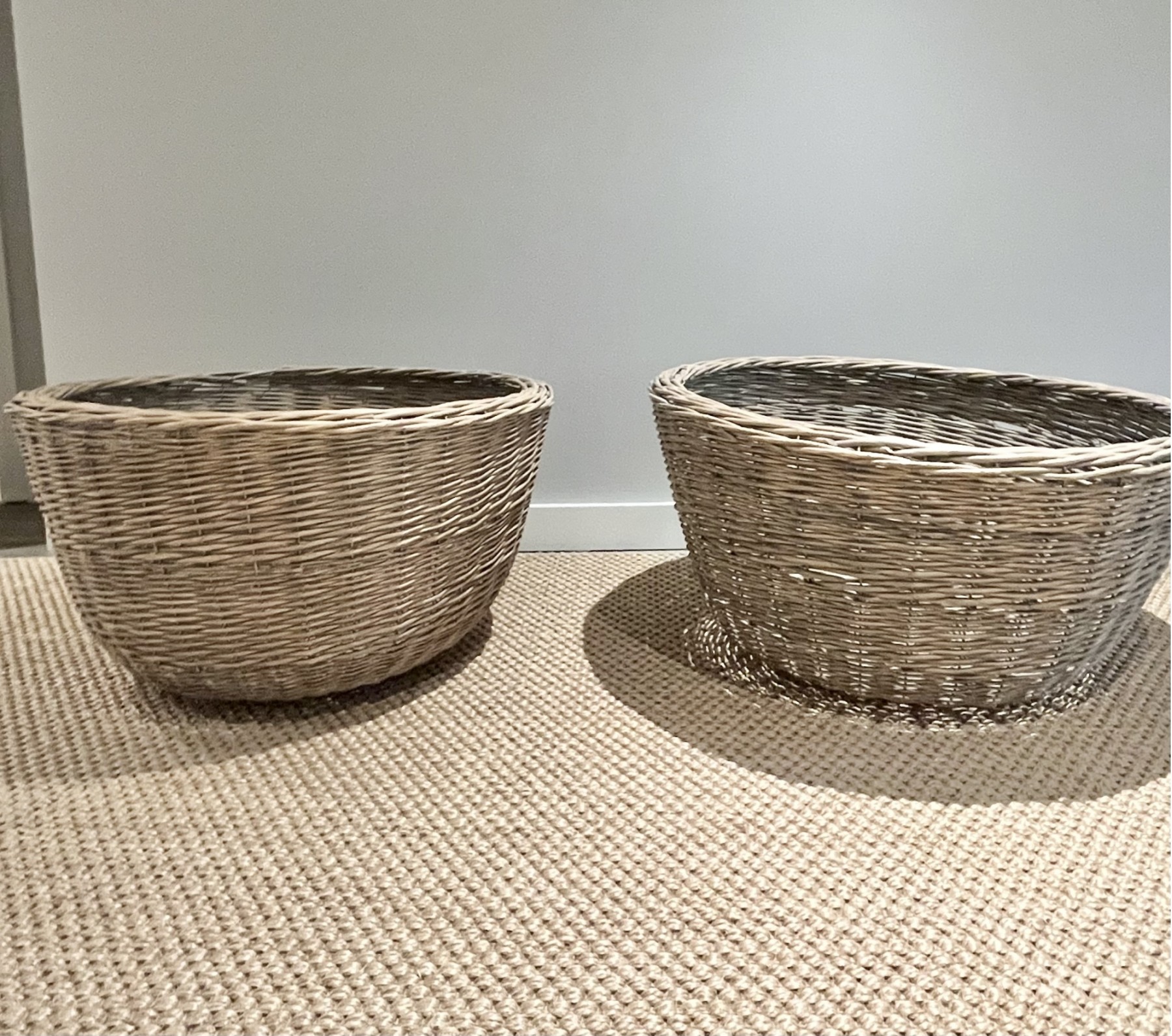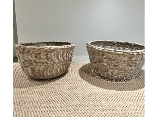 Pair Of Restoration Hardware Oversized Wood & Wire Basket in driftwood grey weathered color