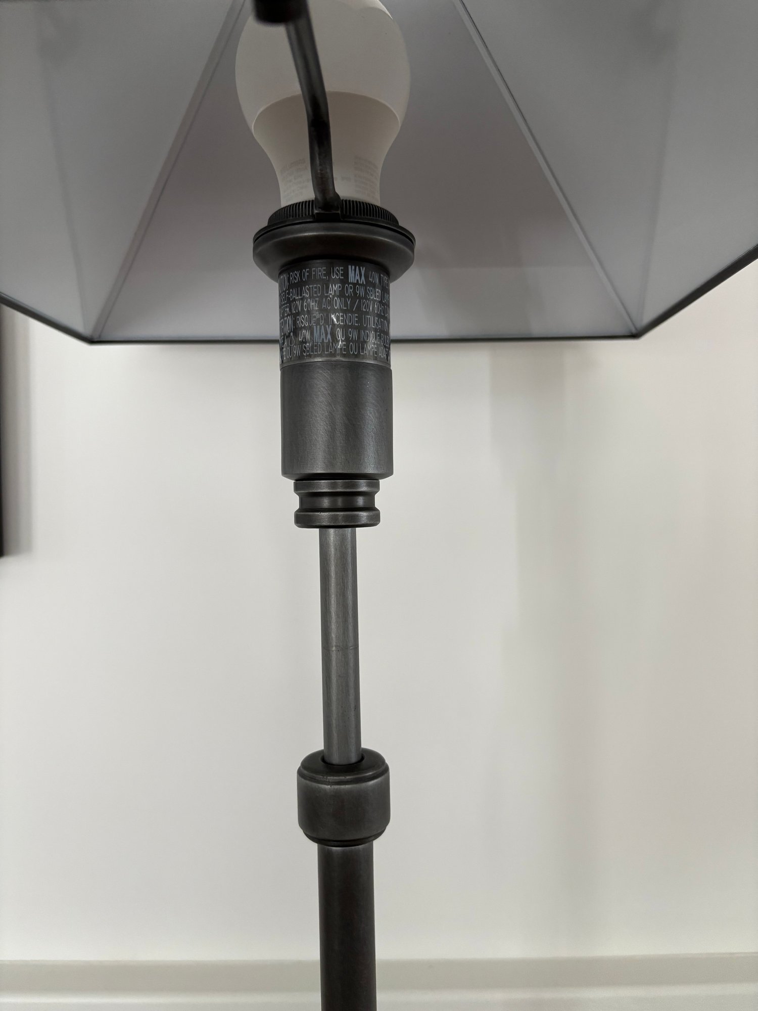 Pair of Restoration Hardware Pyramid Telescoping Table Lamps With Metal Shades.