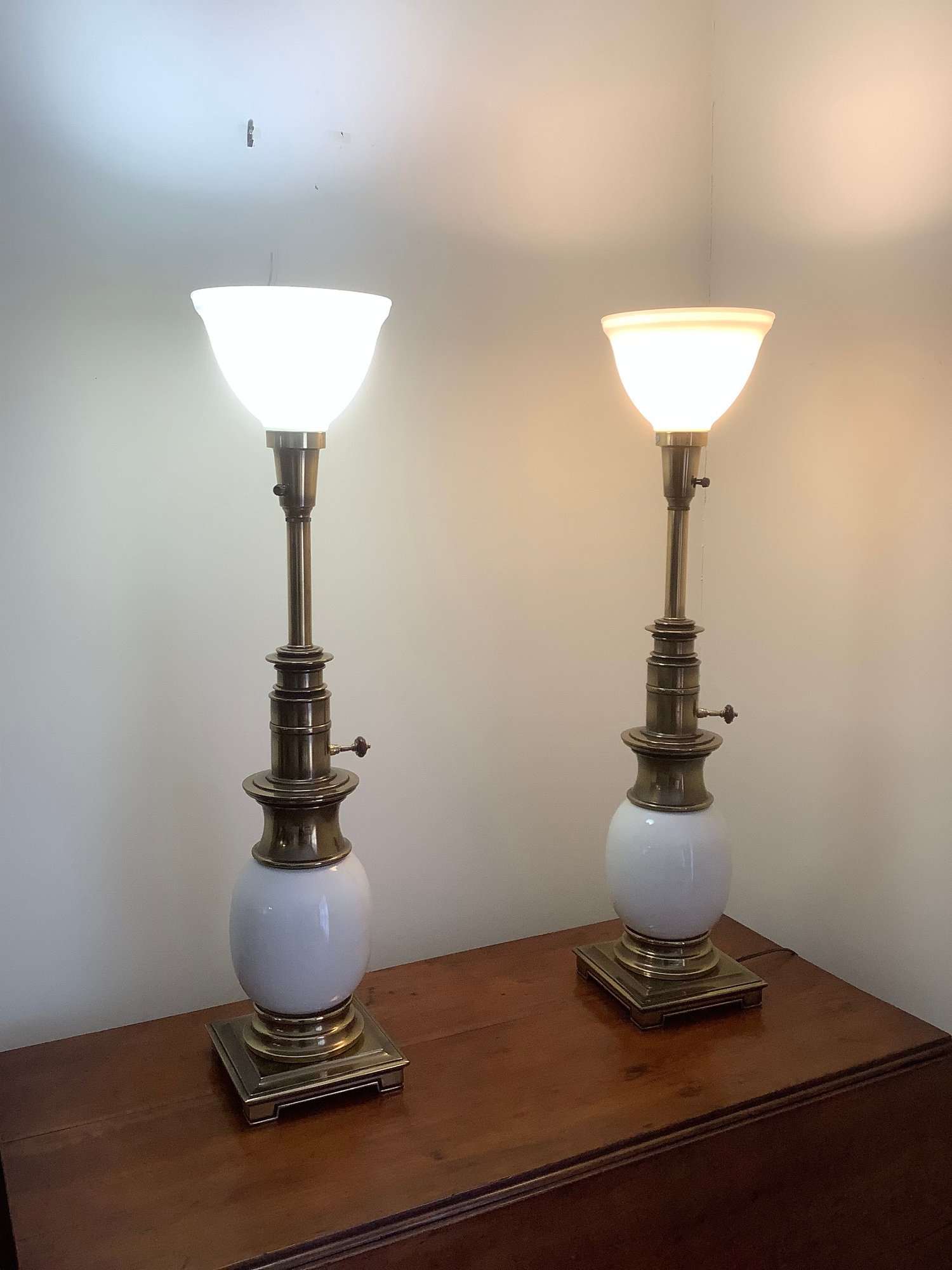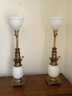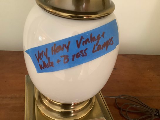 Pair Of Very Heavy Vintage White & Brass Lamps