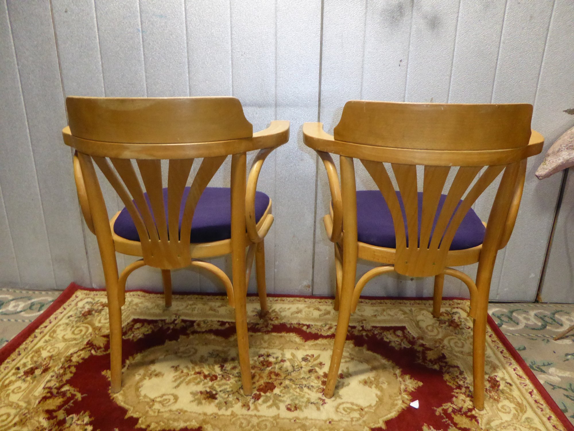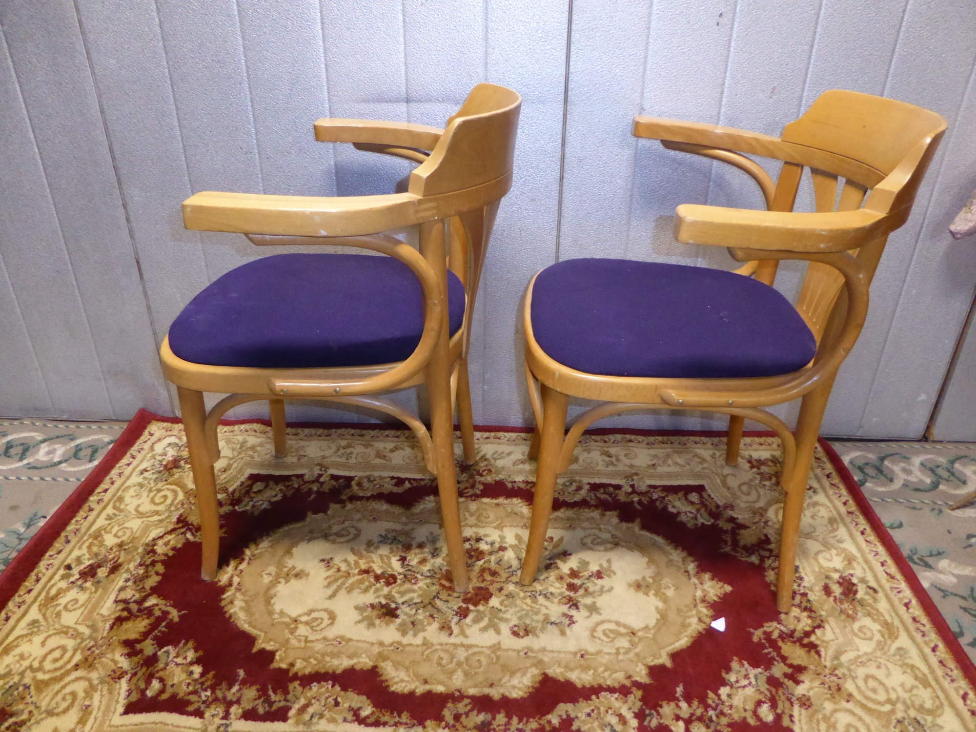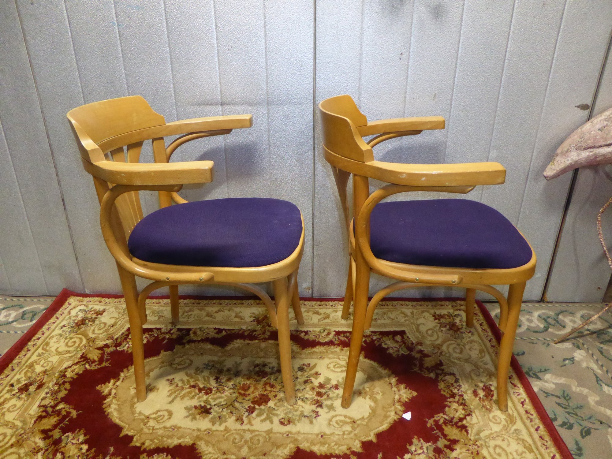 Pair Of Vintage Bent Wooden Arm Chairs