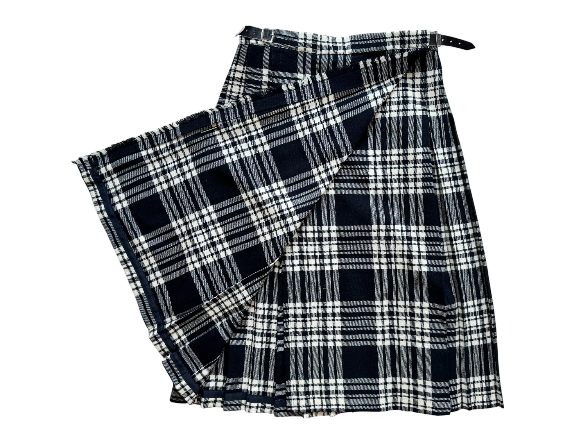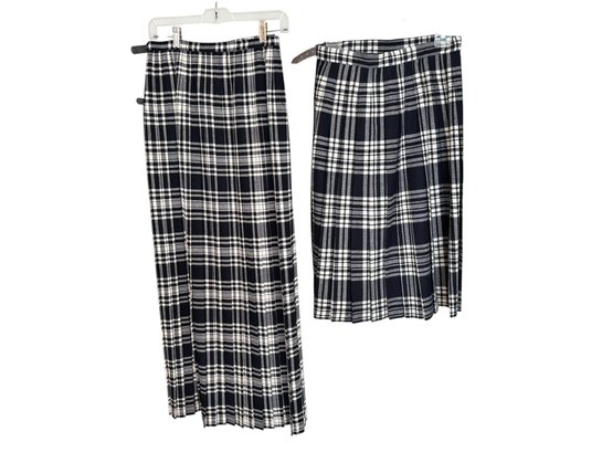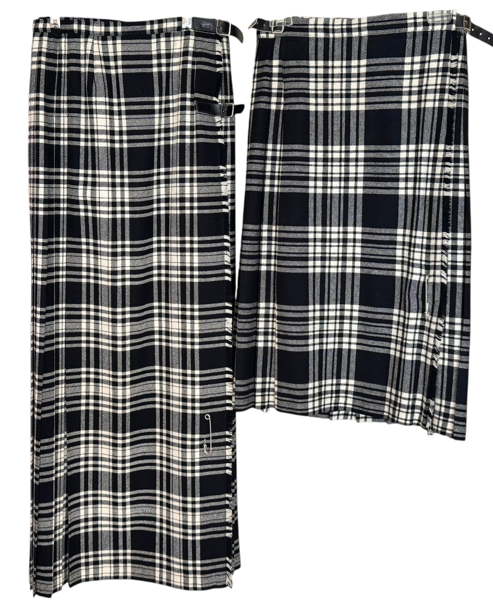 One labeled size 14, both 100% wool, made in Scotland, with leather buckles & kilt pins. The Archie Brown & Son has a 26" waist, 41" length.