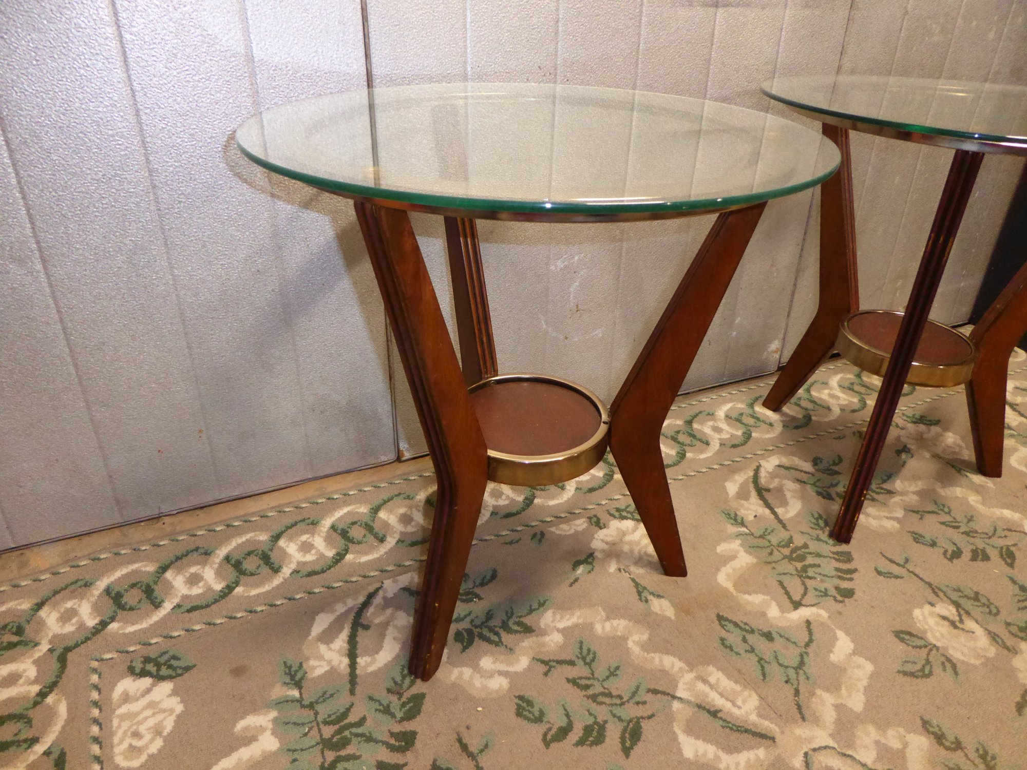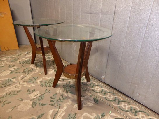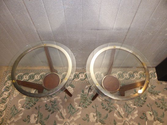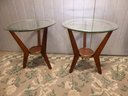 Pair Of Vintage MCM Style Glass Top End/Accent Tables