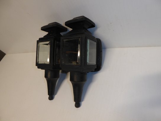 Pair Of Vintage Painted Brass Garage Lights