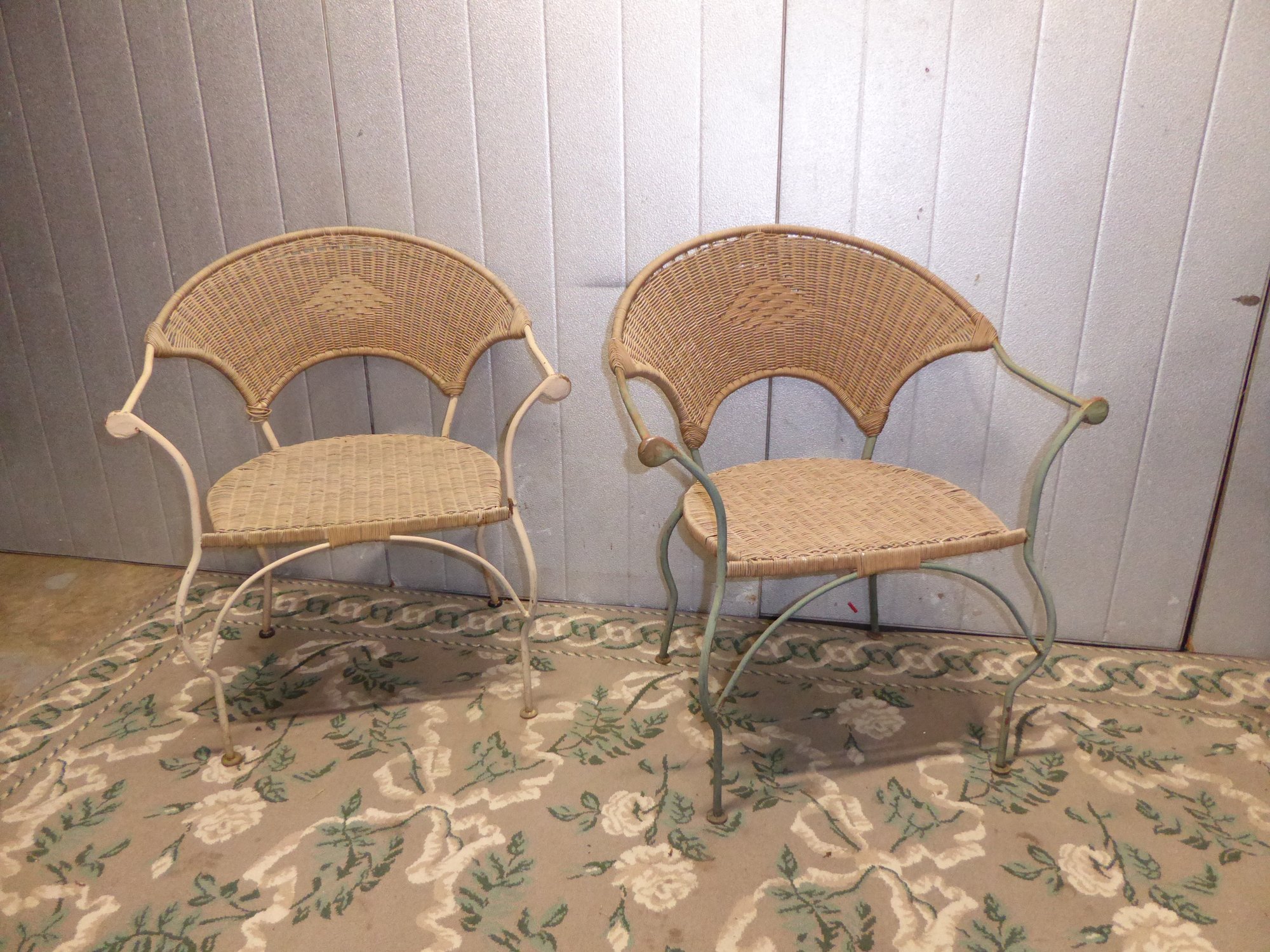 Pair Of Vintage Stackable Wicker And Wrought Iron Patio/Cafe Chairs