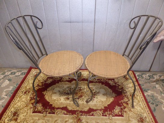 Pair Of Wrought Iron Chairs With Caned Seats