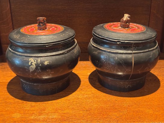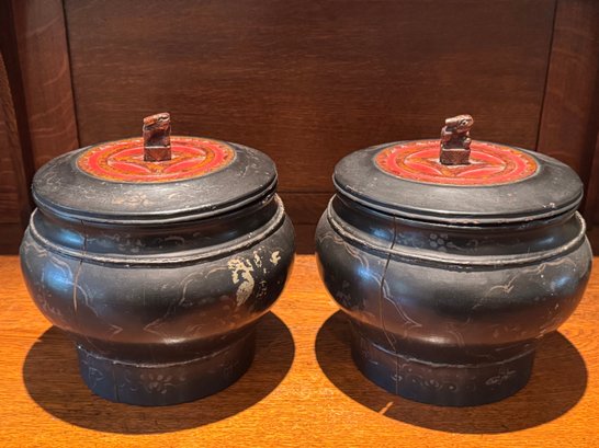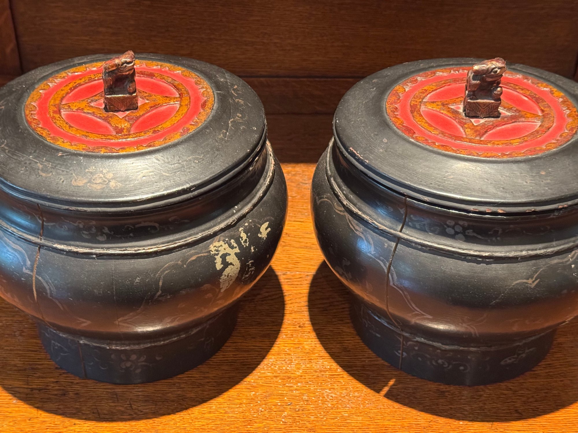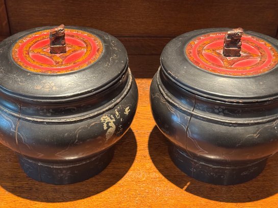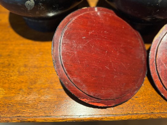 Burmese lacquered offering bowls also known as a Hsun Kwet. These bowls are traditionally used to present food offerings to Buddhist monasteries.