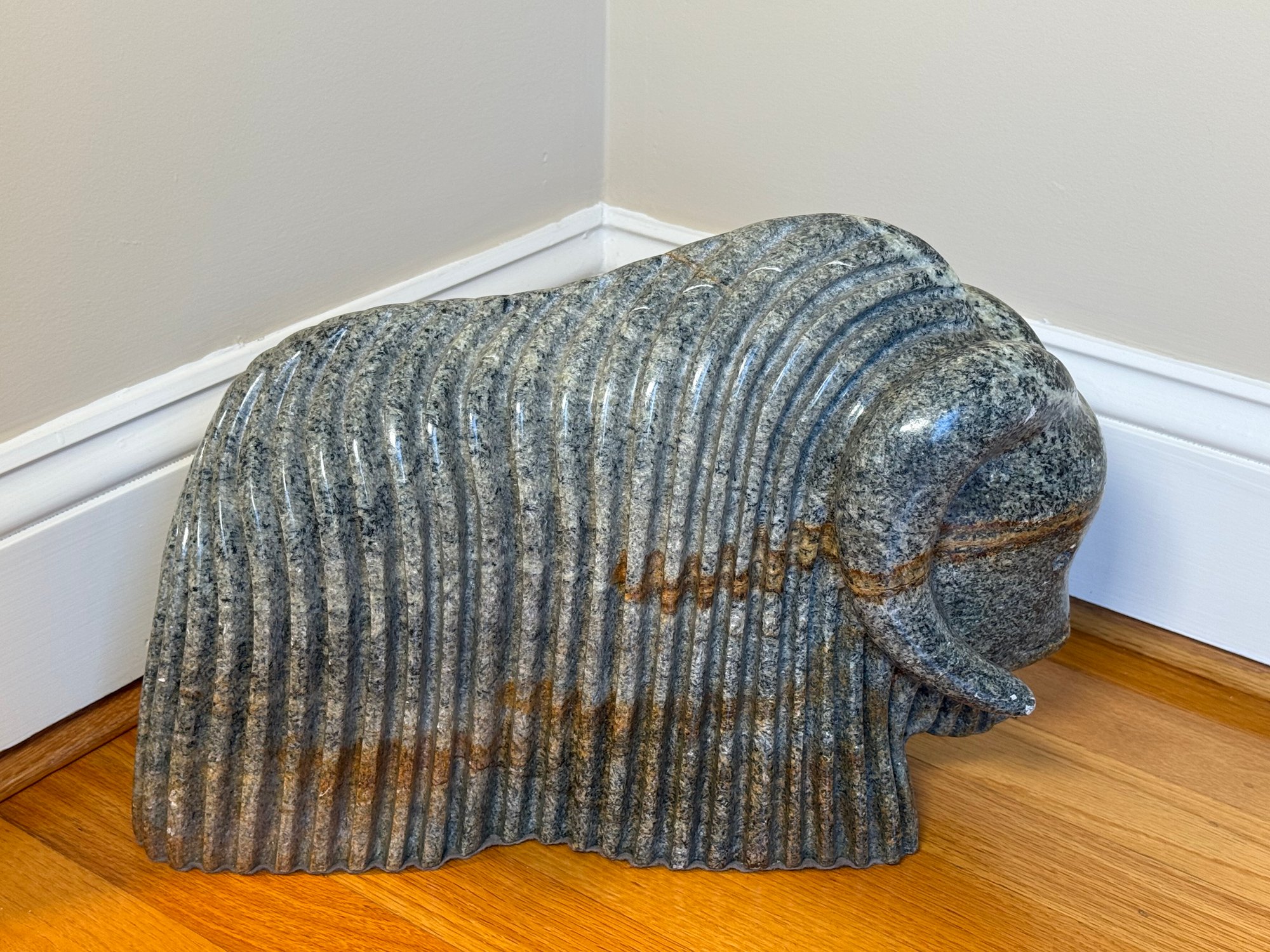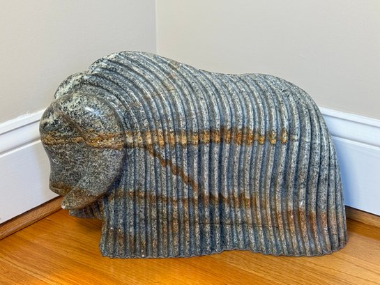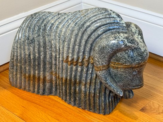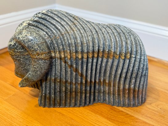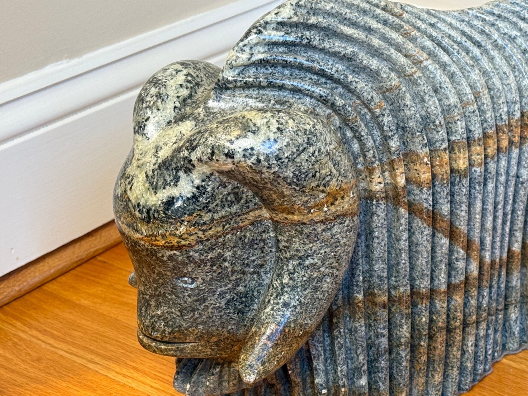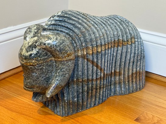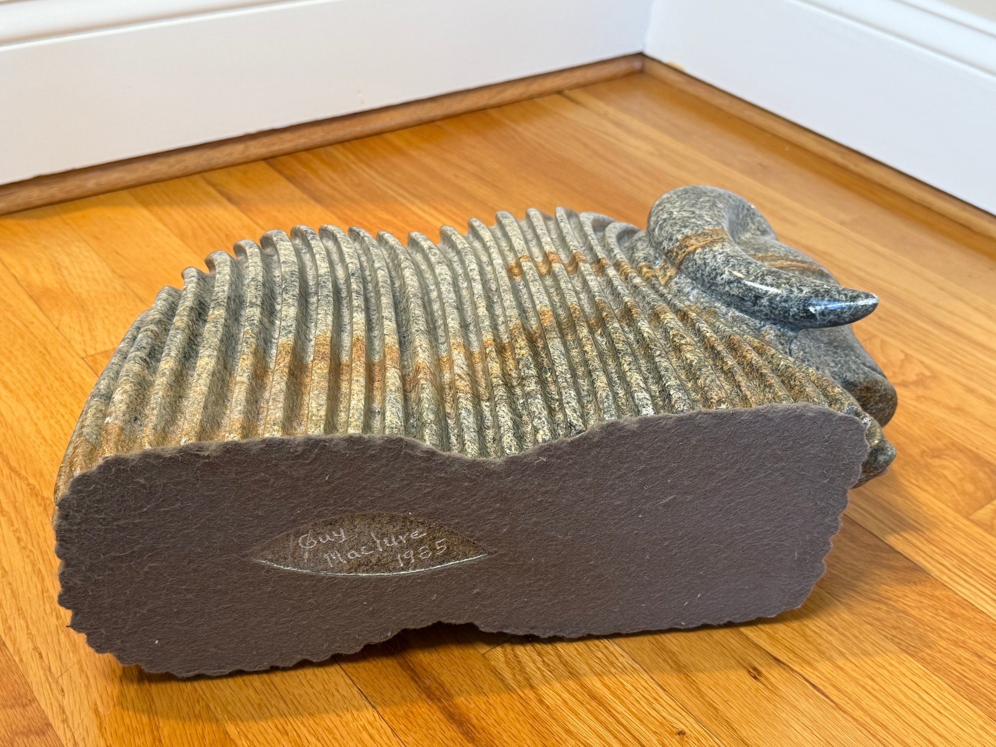 Alaskan Artist Guy Maclure Hand Carved & Signed Soapstone Musk Ox Figure