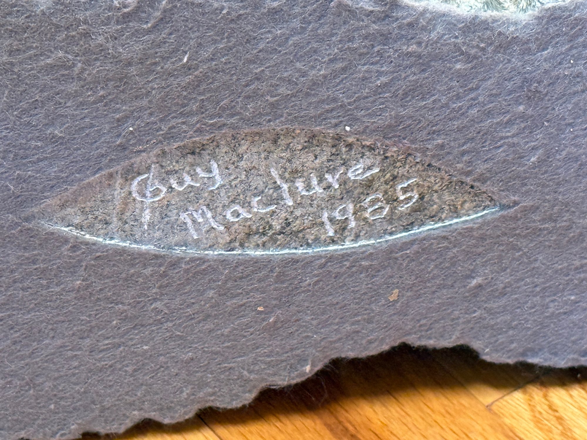 Absolutely beautiful hand carved soapstone musk ox figure that is signed by Alaskan artist Guy Maclure, circa 1985. This is so brilliantly carved with amazing detail. This is a very heavy weighted and quality made piece.