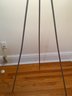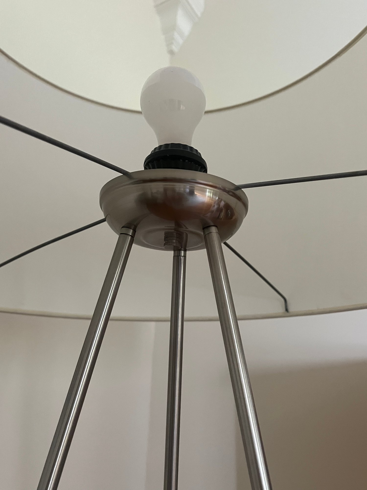 sits on a tripod style brushed silver base. One metal leg is slightly bent see photo.