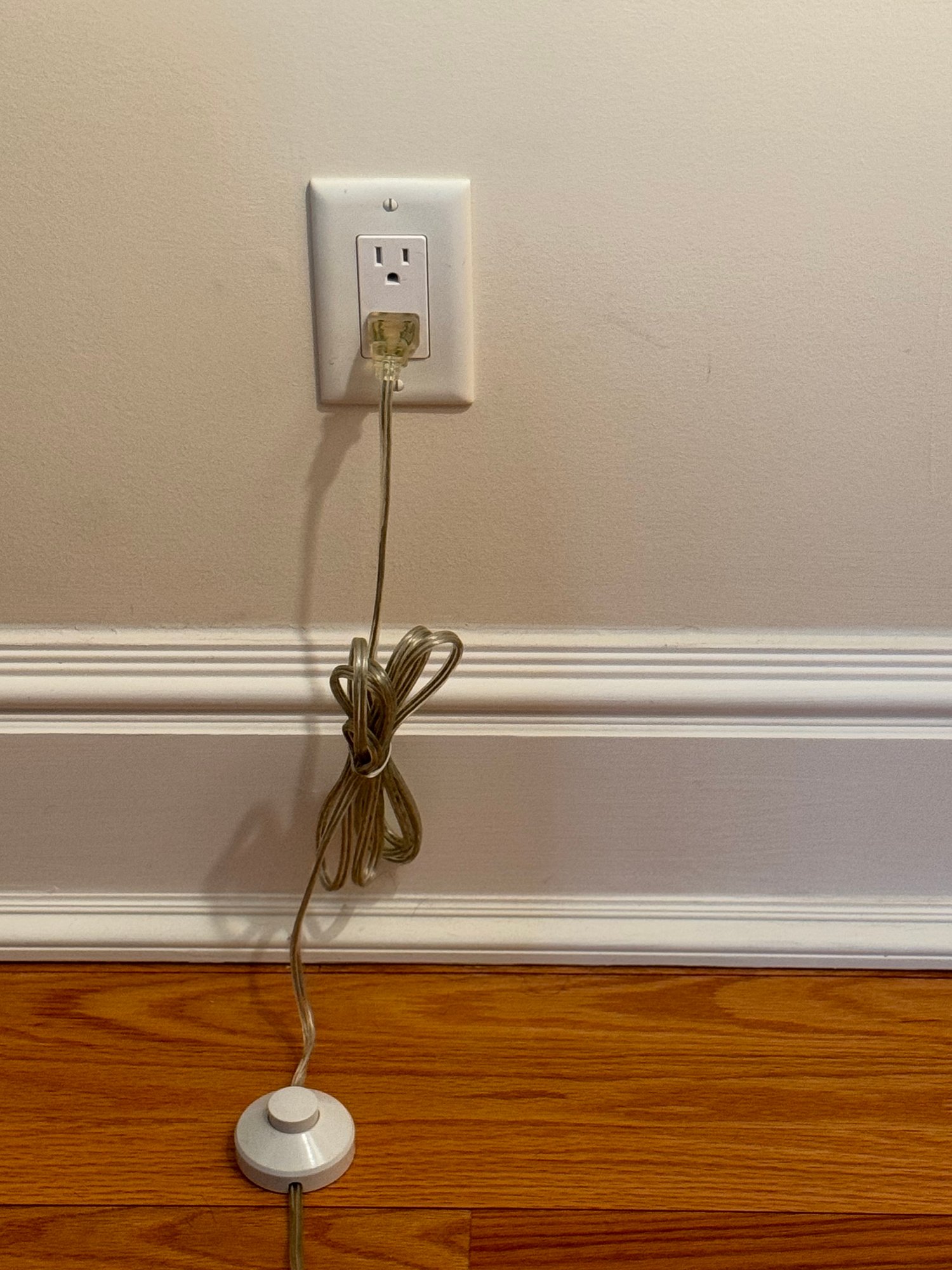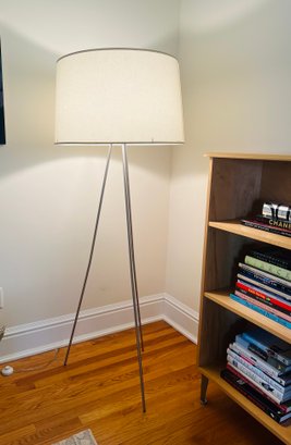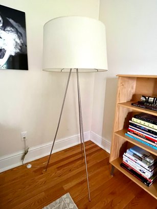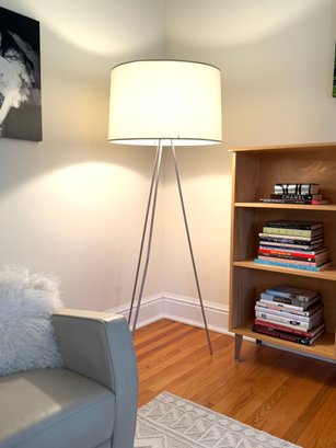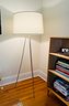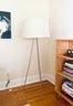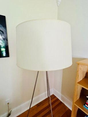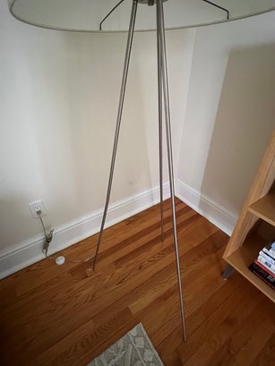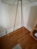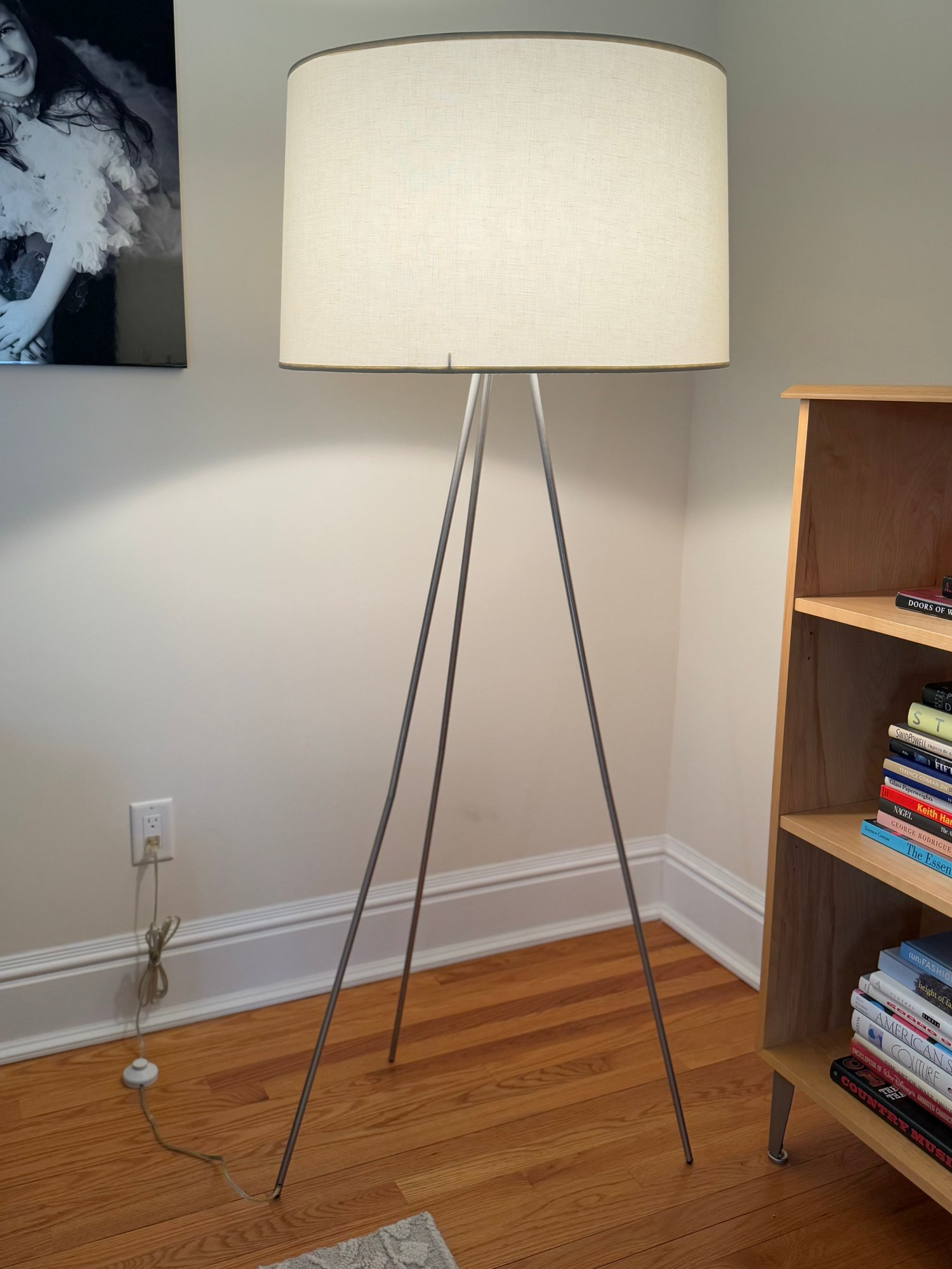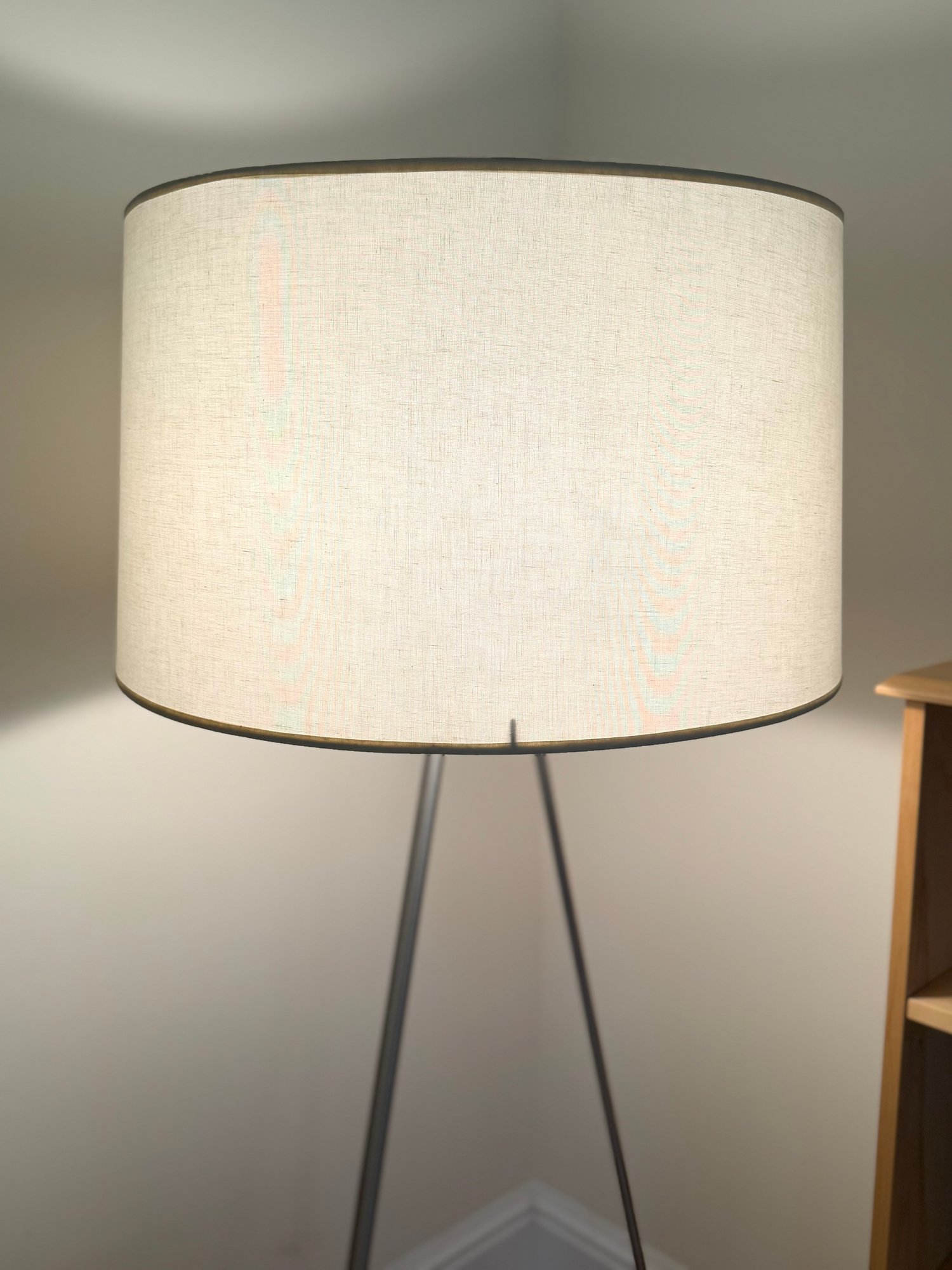 This is a lightweight but large modern floor lamp. Shade is an off white cotton -