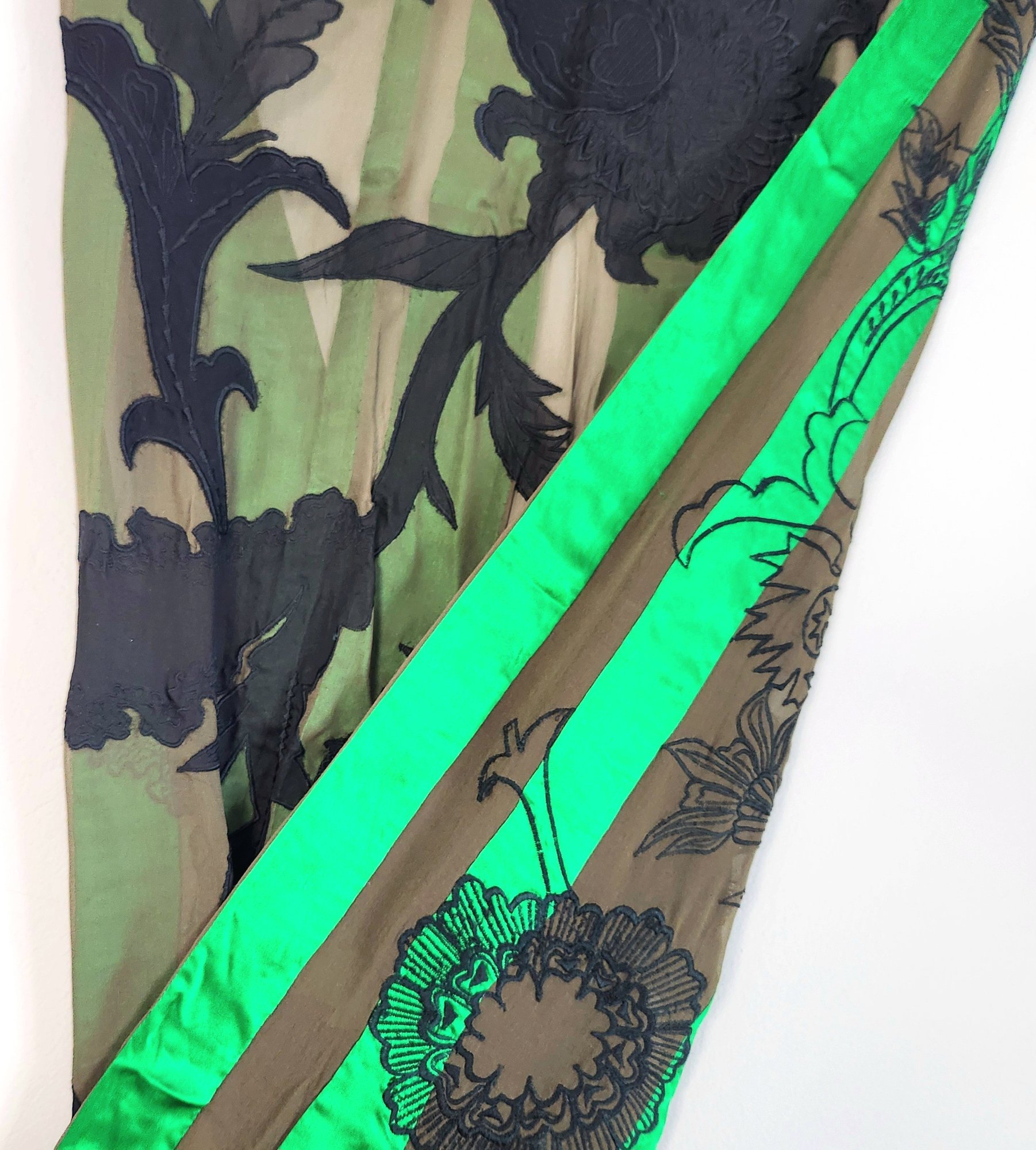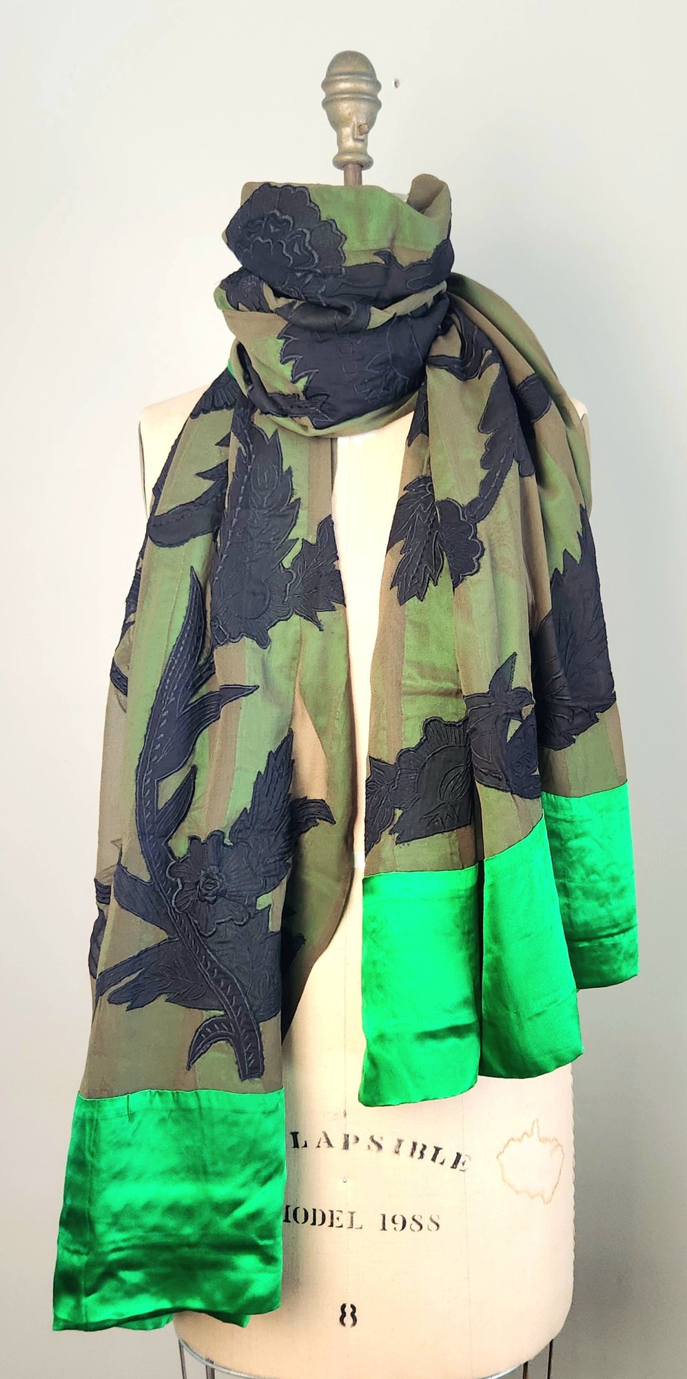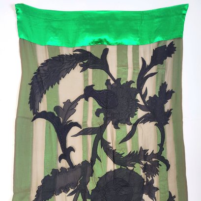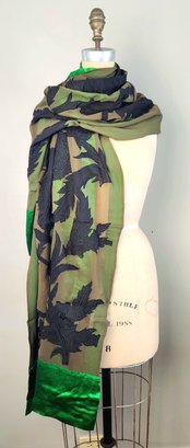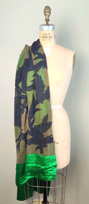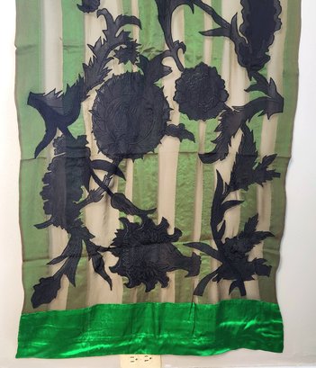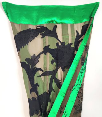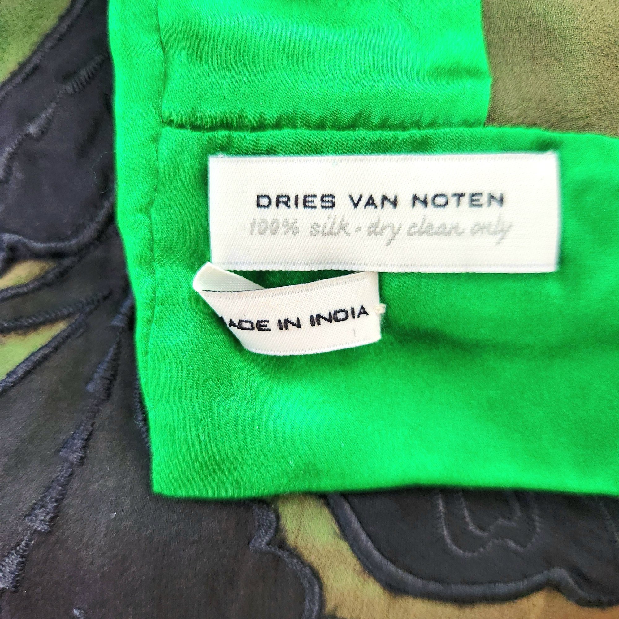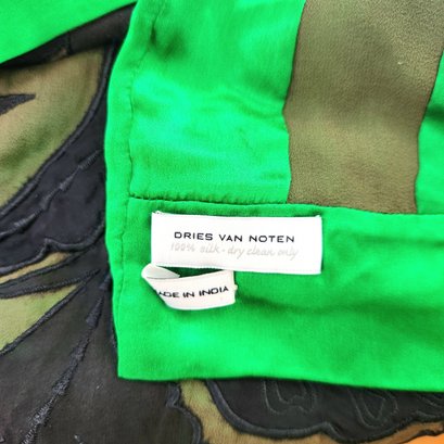 100% silk scarf by Dries van Noten in emerald green and black.