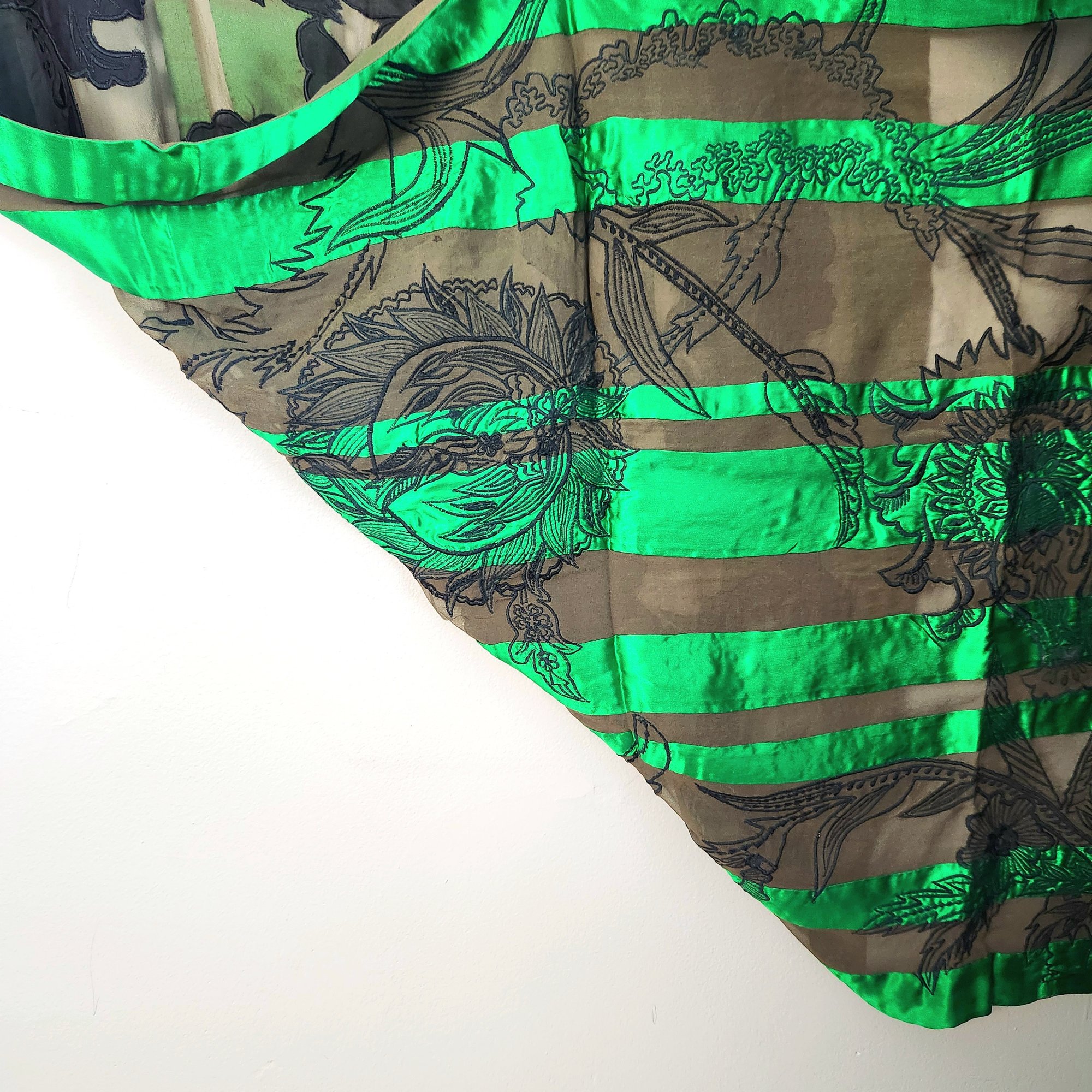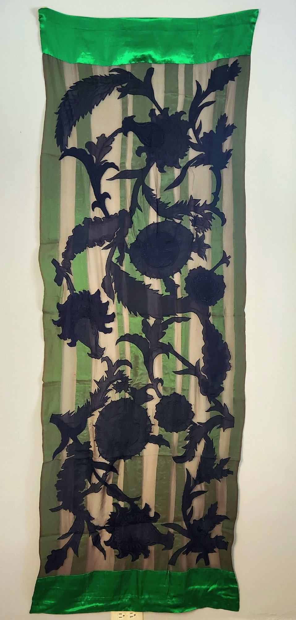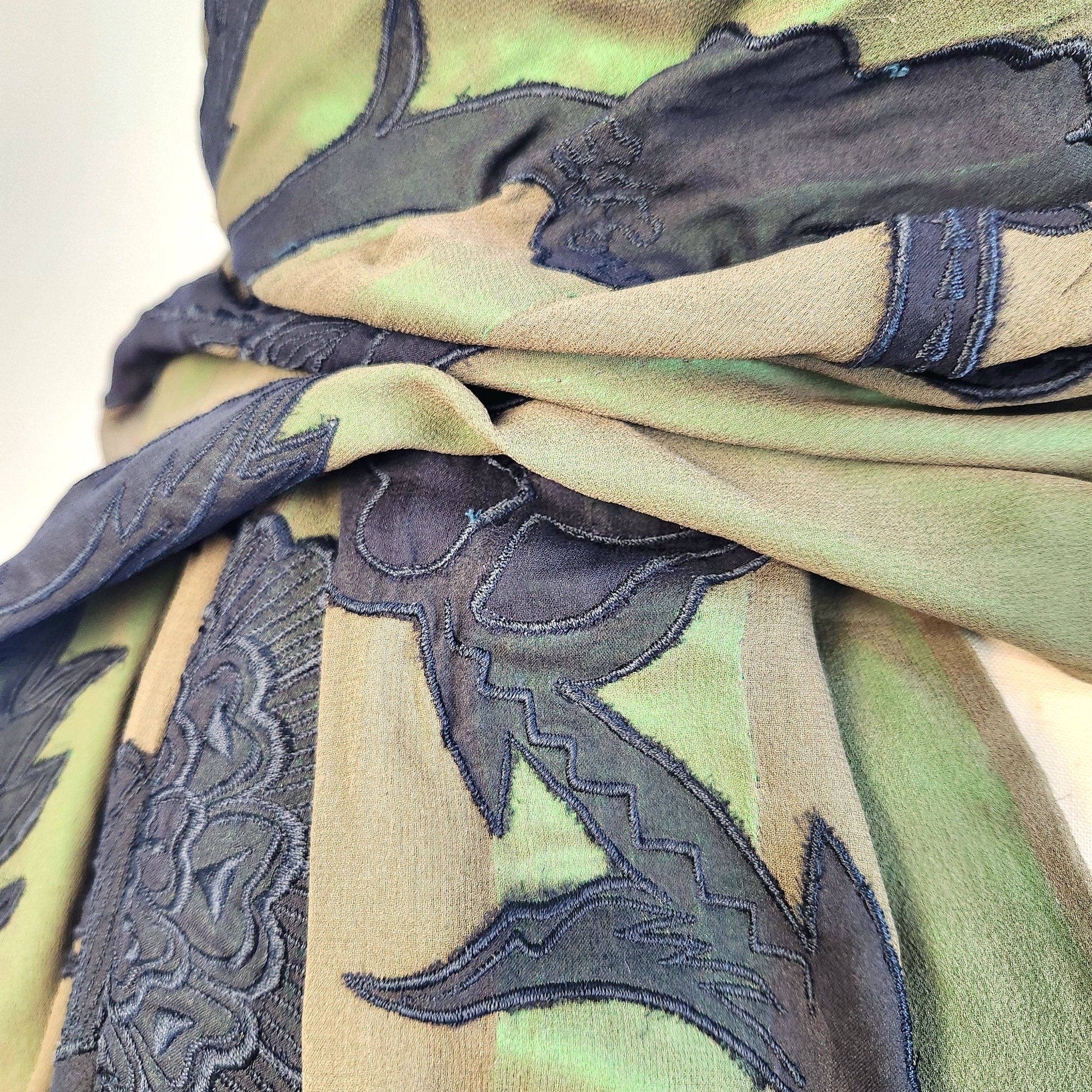100% silk scarf by Dries van Noten in emerald green and black.