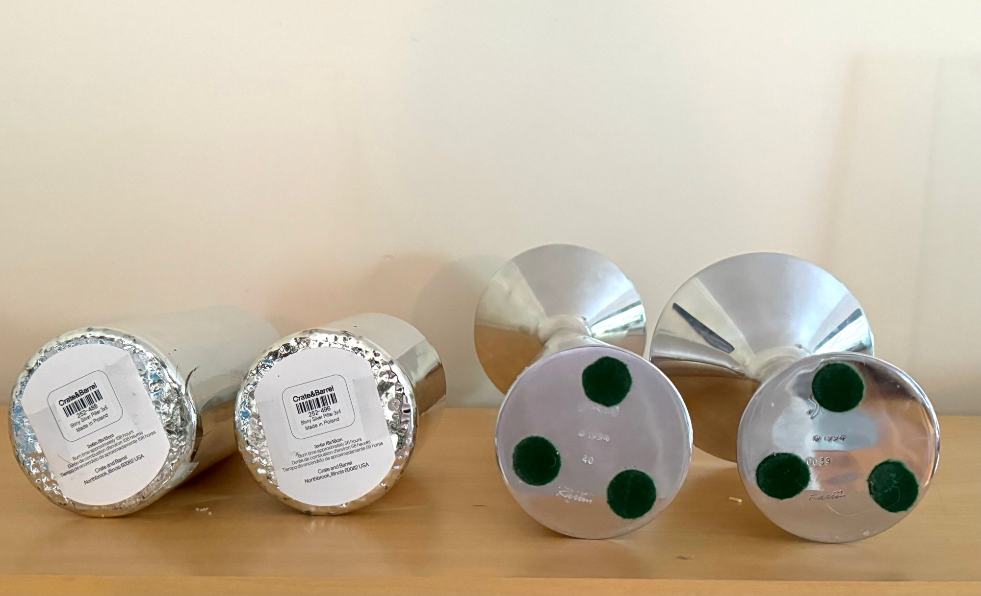 Two Crate & Barrel Silver New Candles