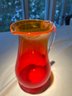 It features a vibrant gradient color, transitioning from a rich red at the base to an amber or orange at the top, a style known as "amberina".
