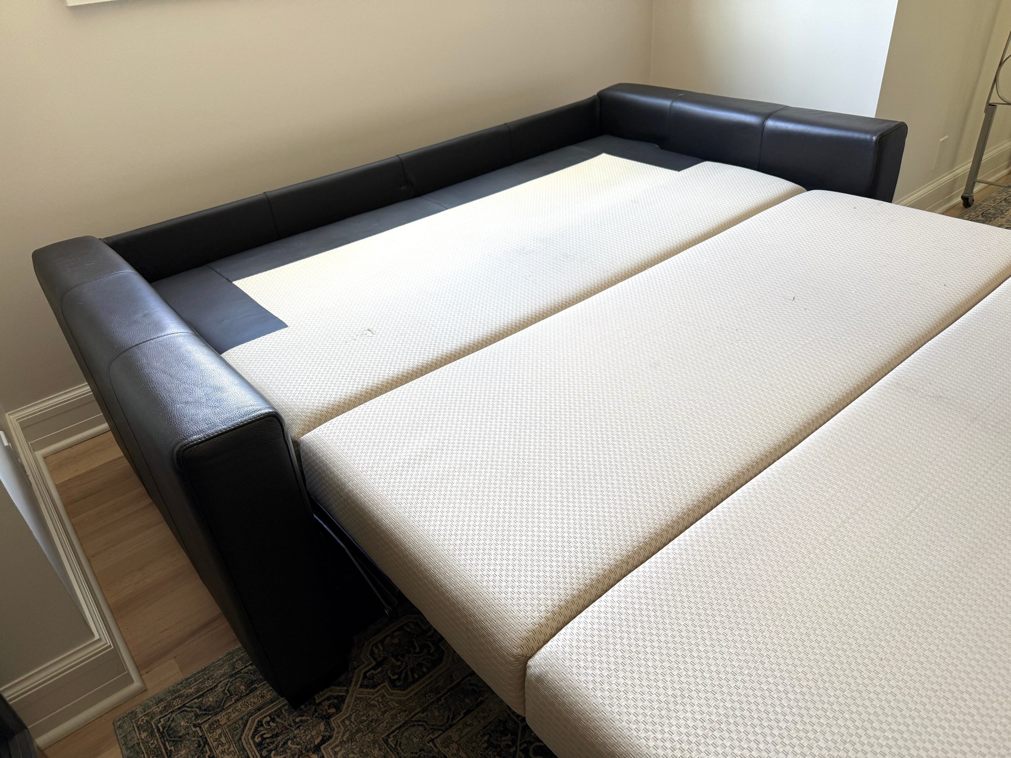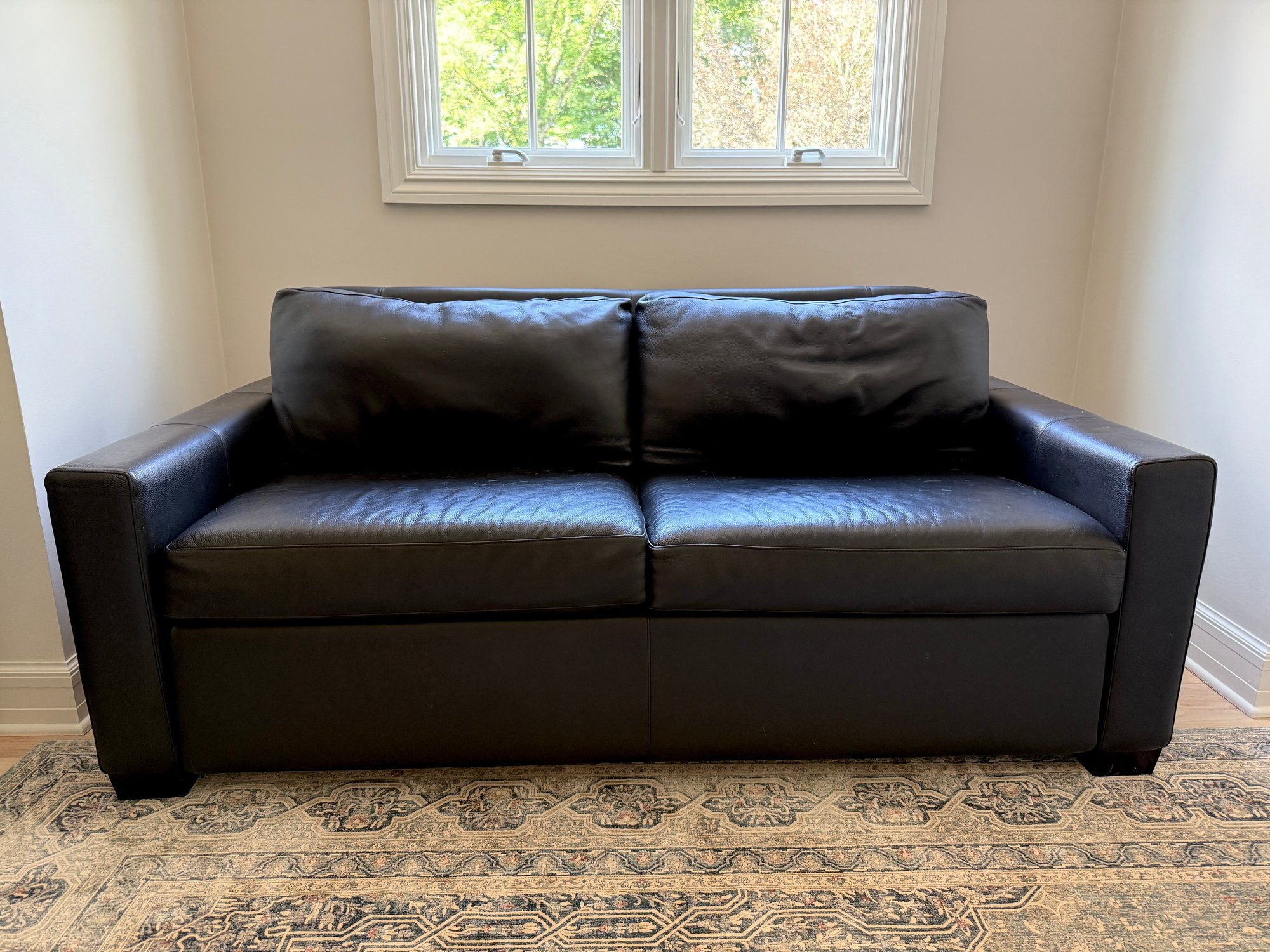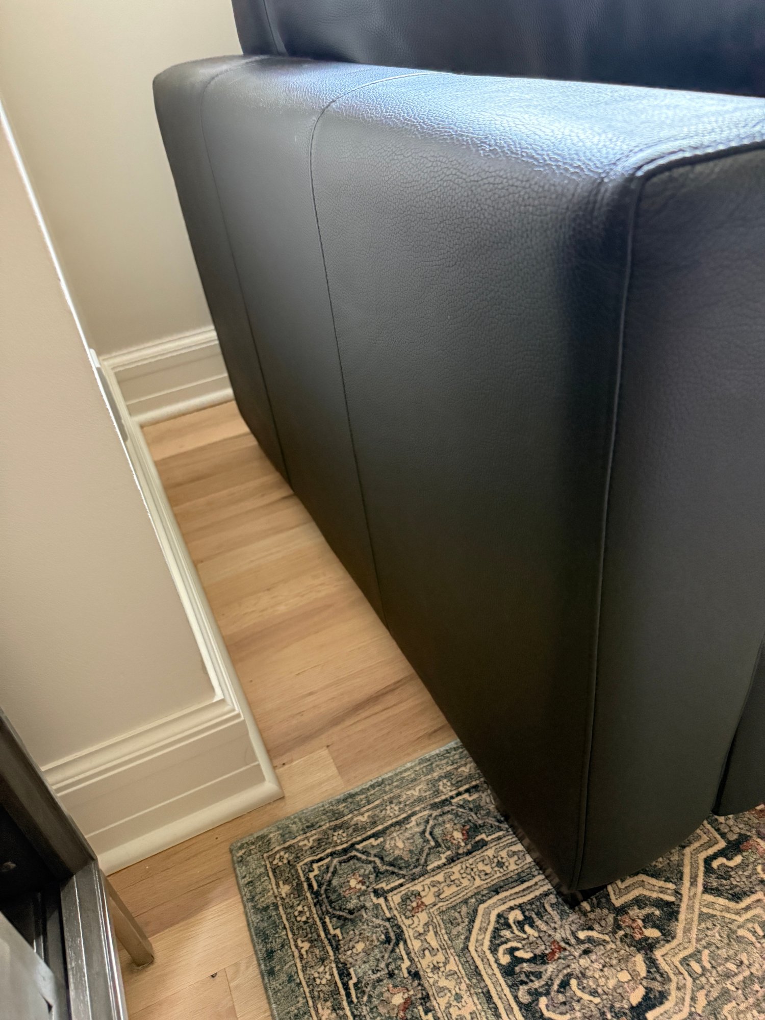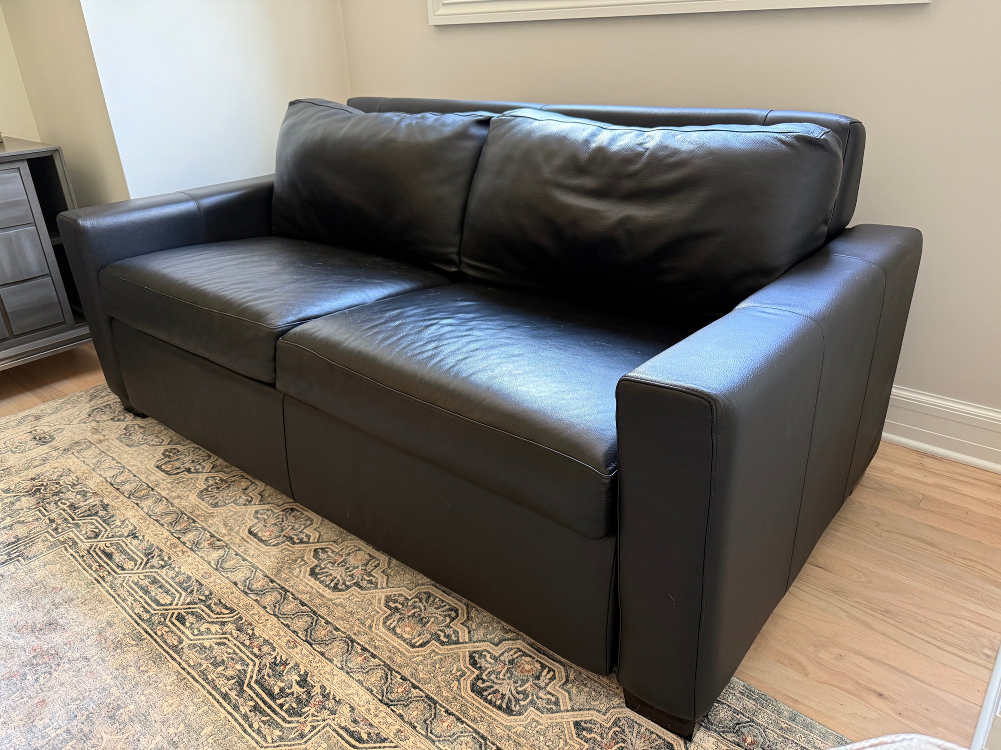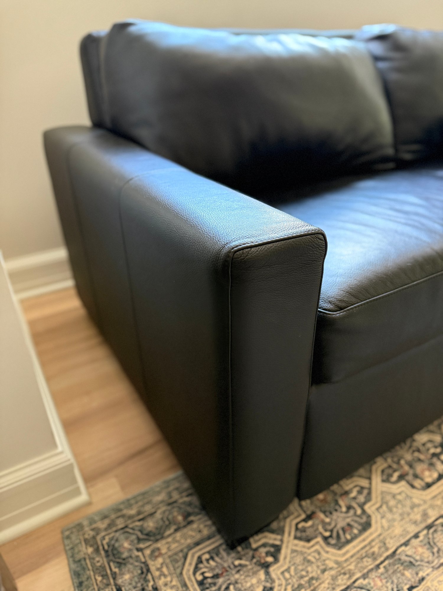 Leather is in good condition. Would benefit from cleaning on the inside fabric areas.