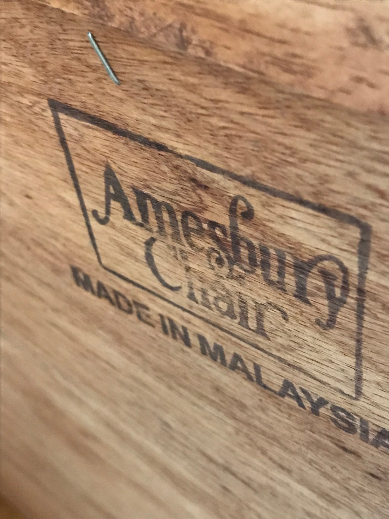Construction: Authentic Amesbury Chair craftsmanship with visible branding