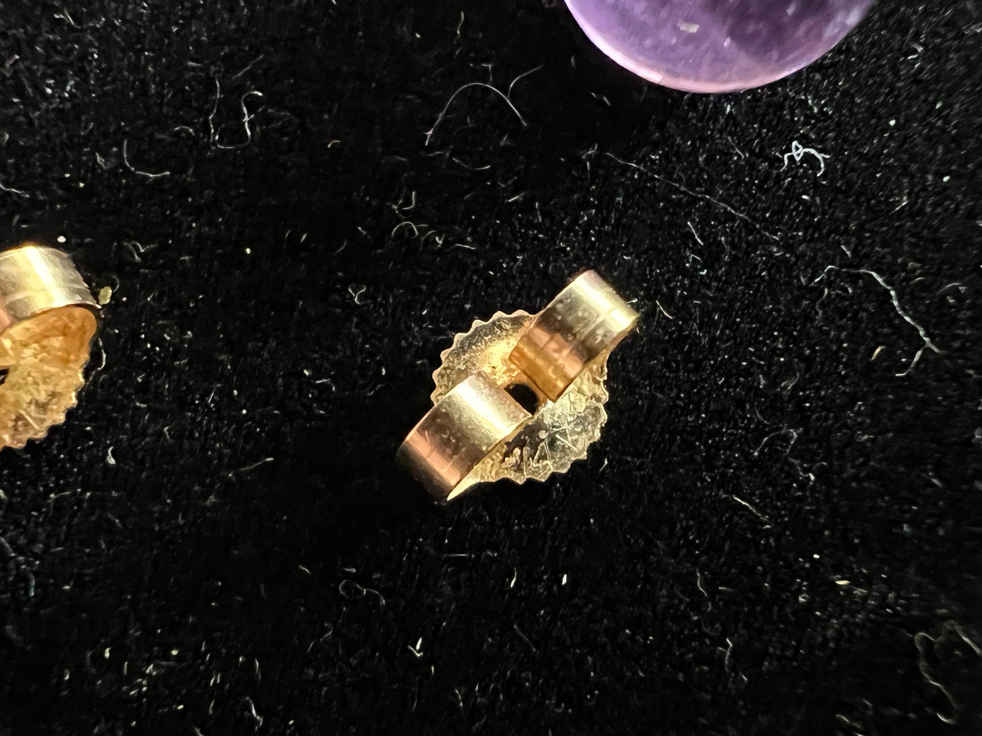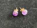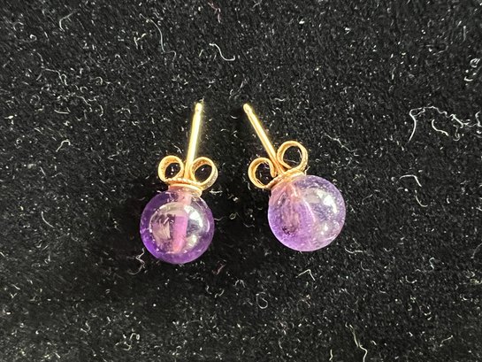 Vintage amethyst stone bead and 14 karat yellow gold stud earrings.