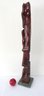 A carved and polished wooden abstract sculpture, possibly African, on green marble base standing 36" in height. Unsigned.