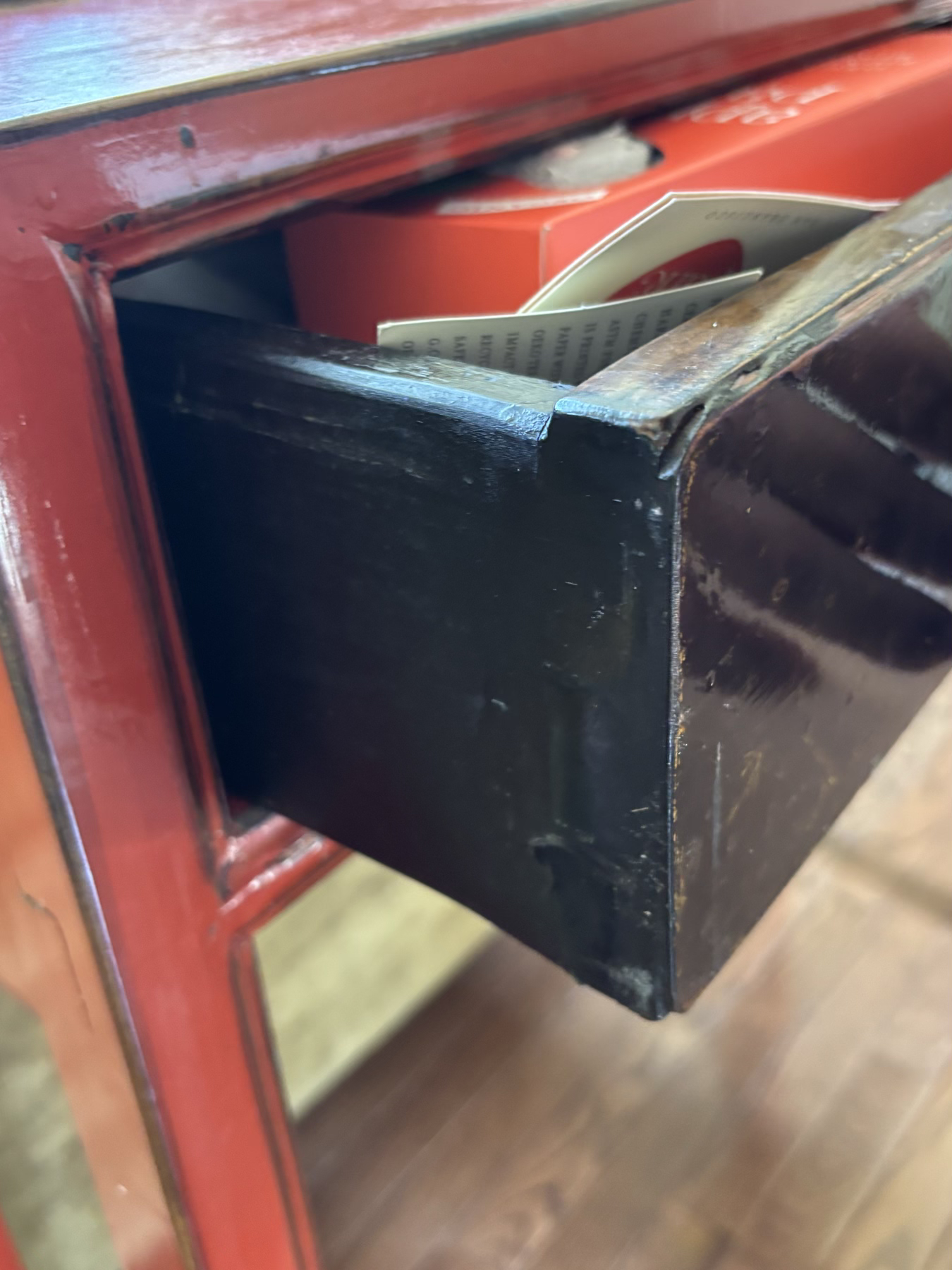 An Antique Chinese Console In Red And Black Lacquer