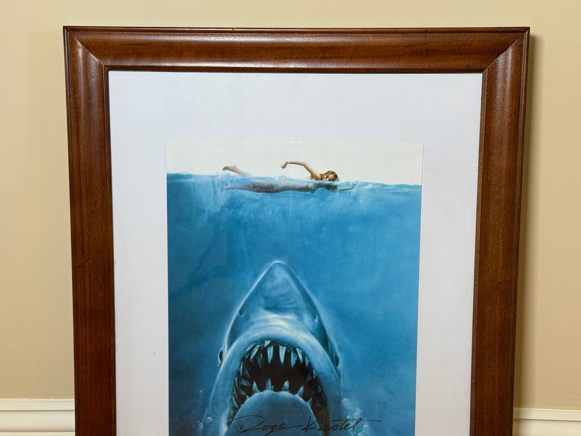 An Autographed Roger Kastel Jaws Film Framed Poster