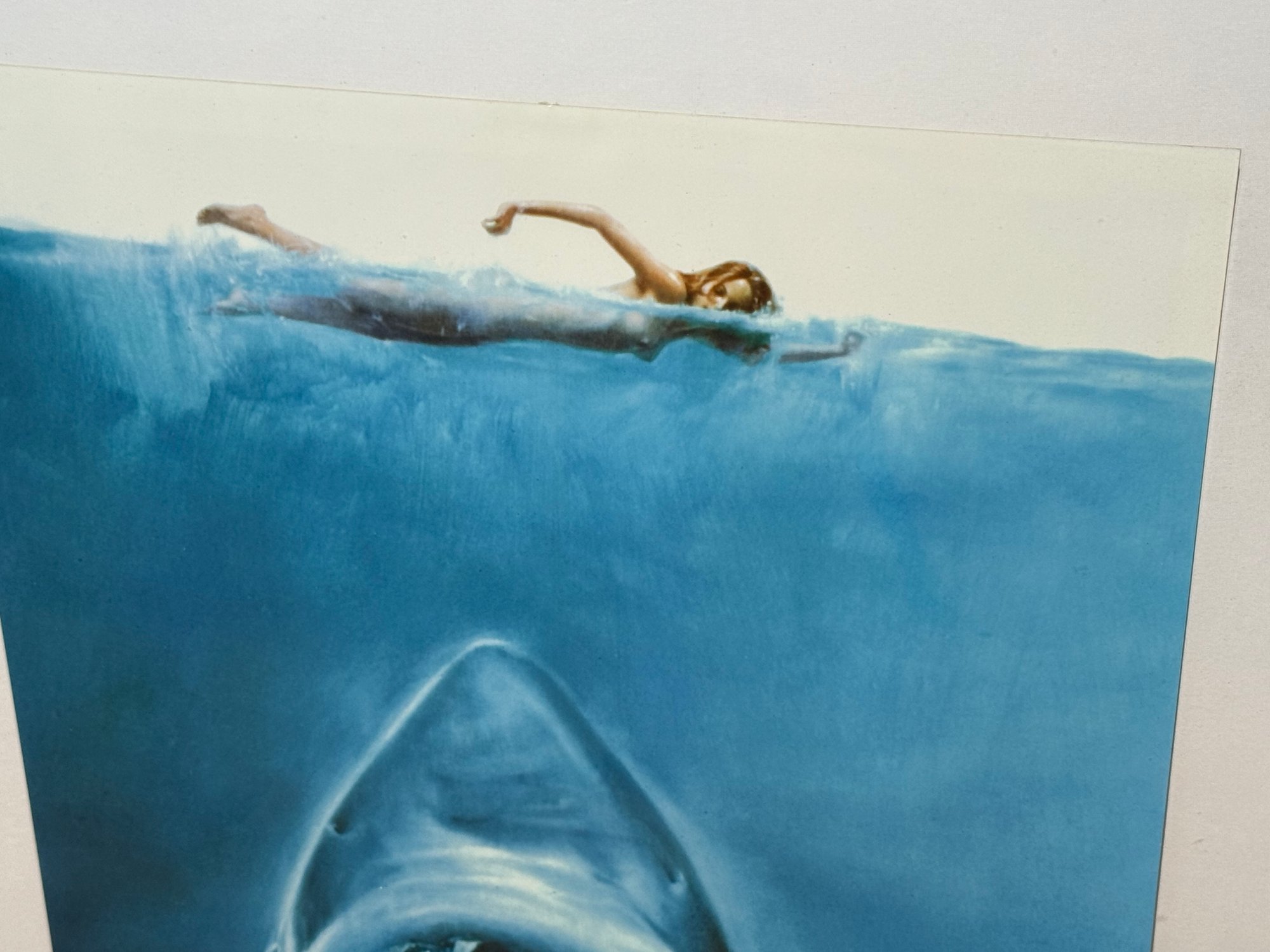 This poster art is from the 1975 film Jaws, directed by Steven Spielberg. The artwork was created by Roger Kastel and he has autographed this poster.