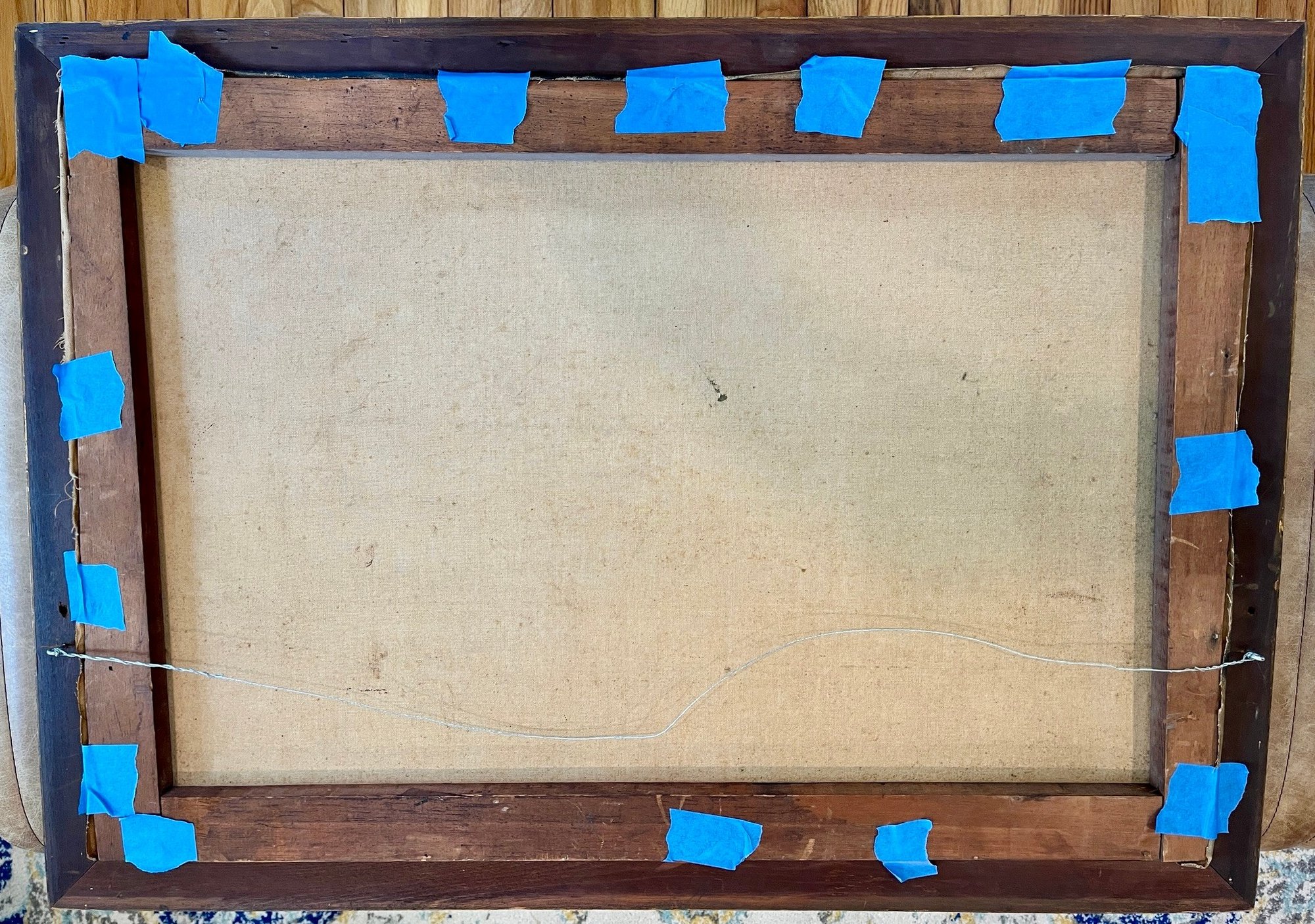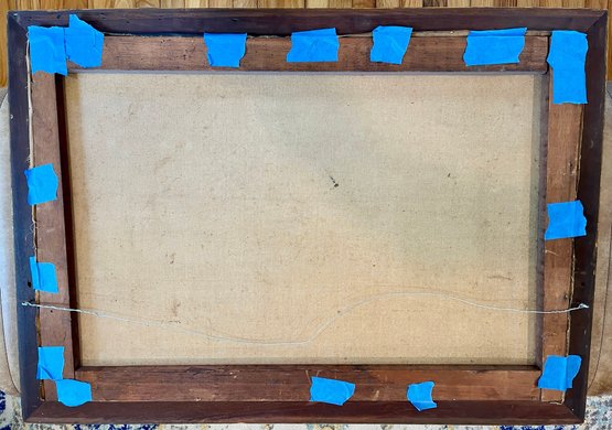 Consistent with age, very minor areas of wear or slight loss. Painting needs to be secured in the frame, note the blue tape.