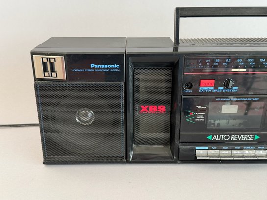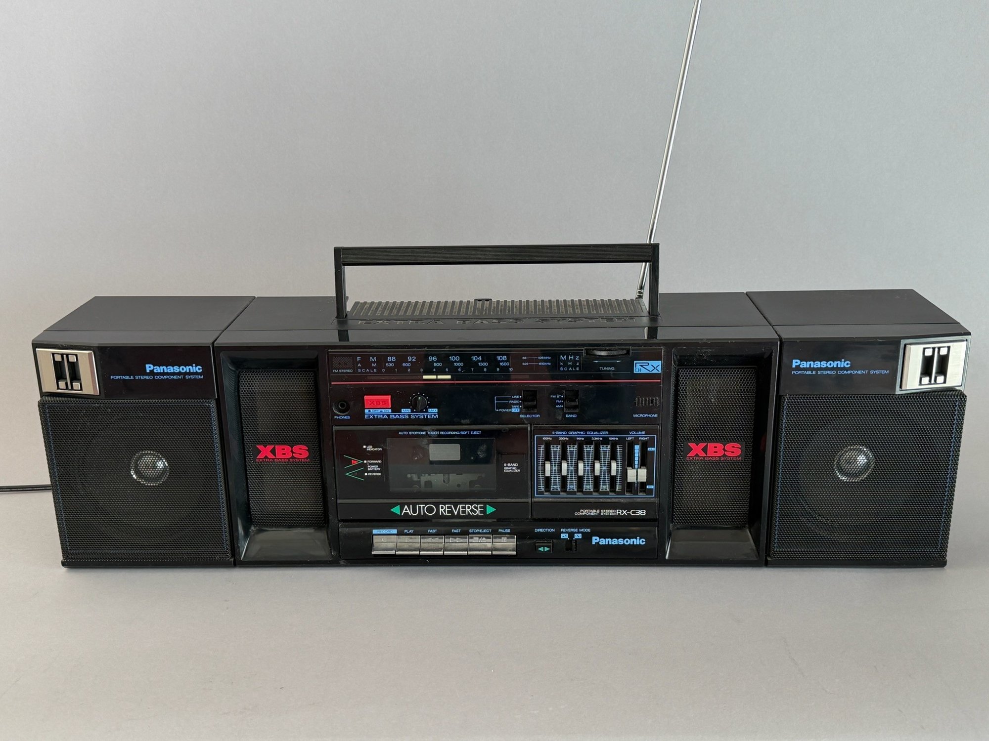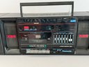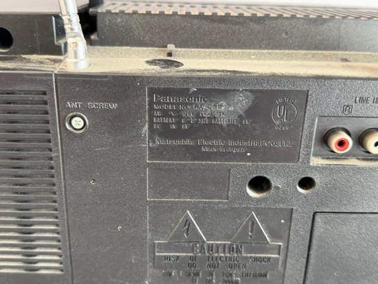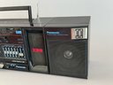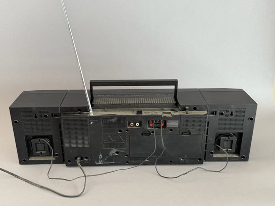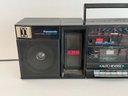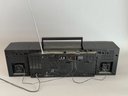 Works great, plays radio with power cord, 26" x 6" x 8".