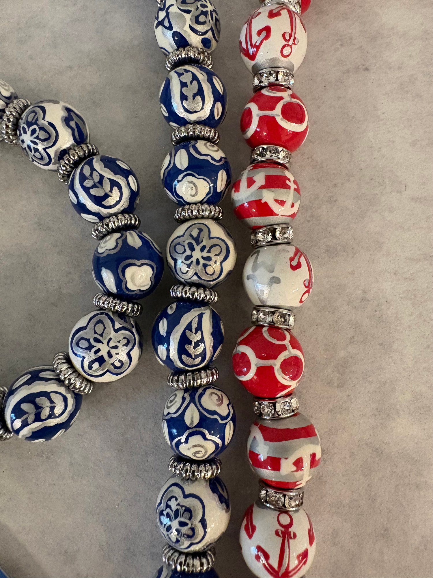 Collection of five (5) 16" necklaces, two set with crystal spacers, and two (2) coordinating bracelets.