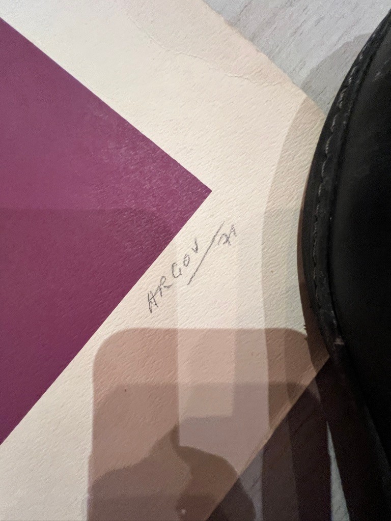 The artist, Michael Argov (1920-1982), was known for experimenting with materials and incorporating colorful shapes and rhythms in his work.