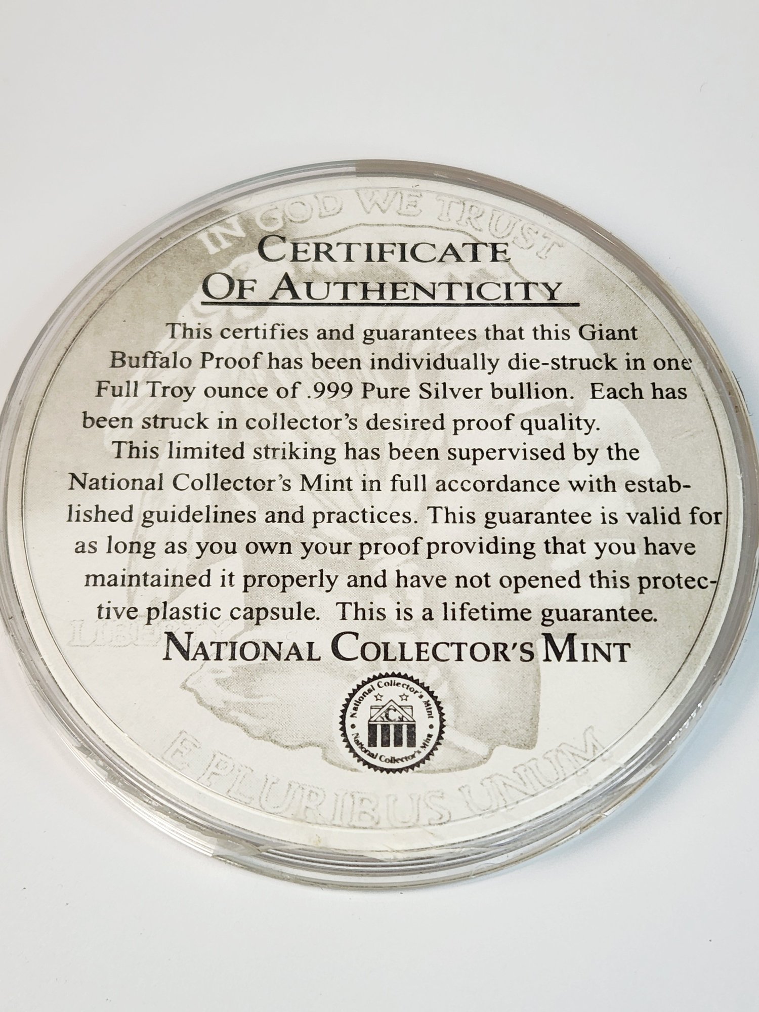 Giant Buffalo 1 oz .999 Silver Proof Coin with COA National Collectors Mint